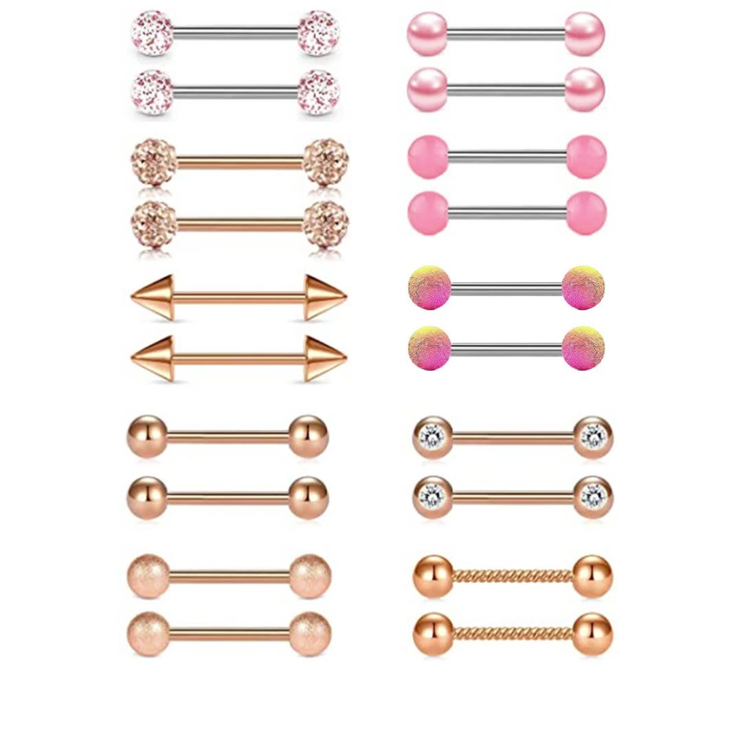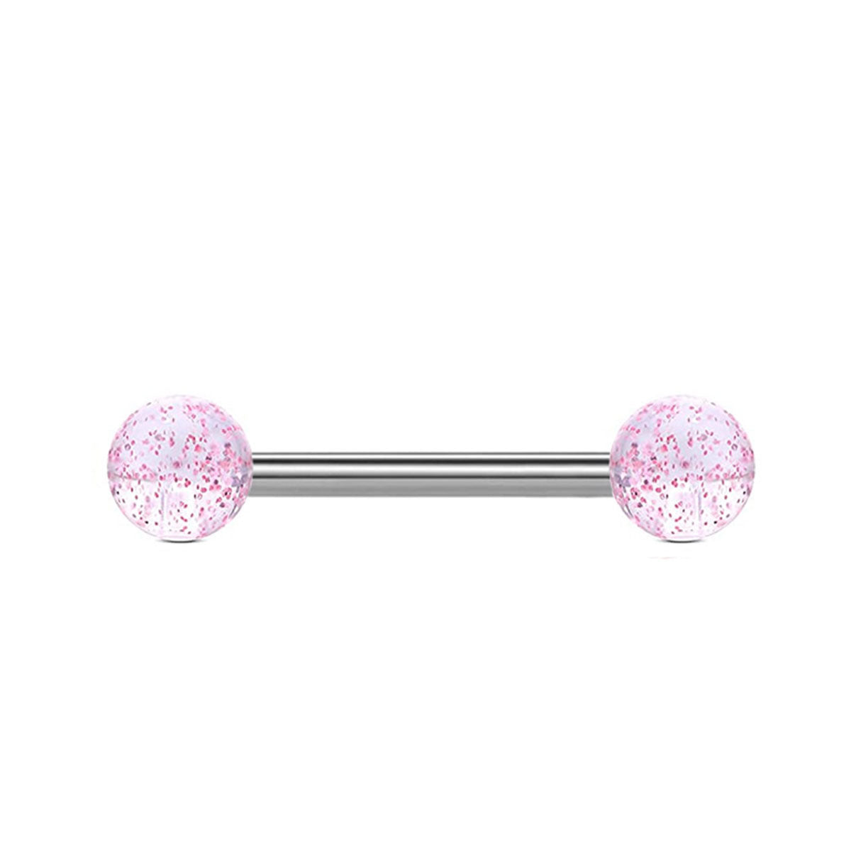 14G European and American stainless steel frosted diamond tongue nail rose gold milk nail ring Amazon cross-border body piercing jewelry