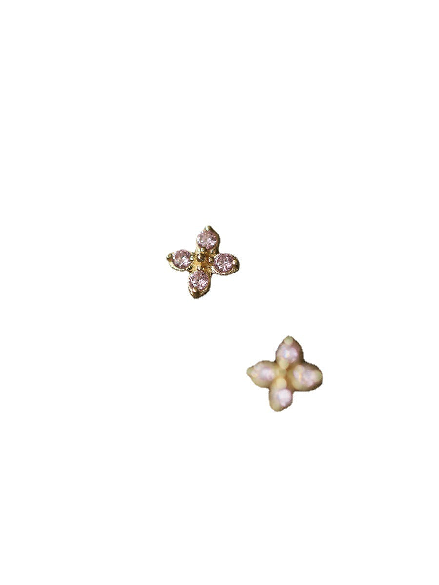 14K gold-plated earrings, light pink cross flower, elegant and elegant earrings, Japanese and Korean niche single earrings, earrings, silver electric