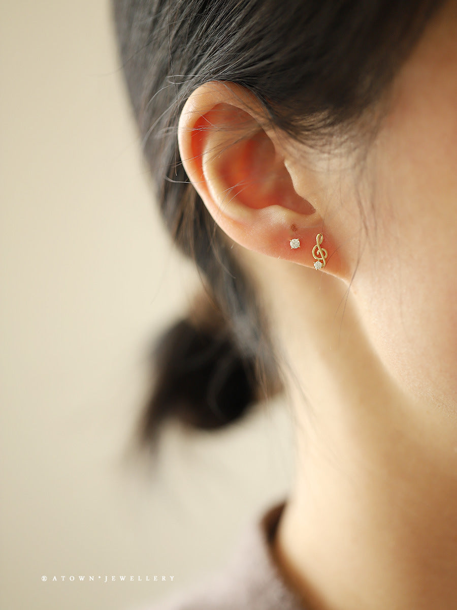 14K gold plated earrings, musical notes, violin musician earrings, elegant mini Japanese and Korean earrings, earrings, other/