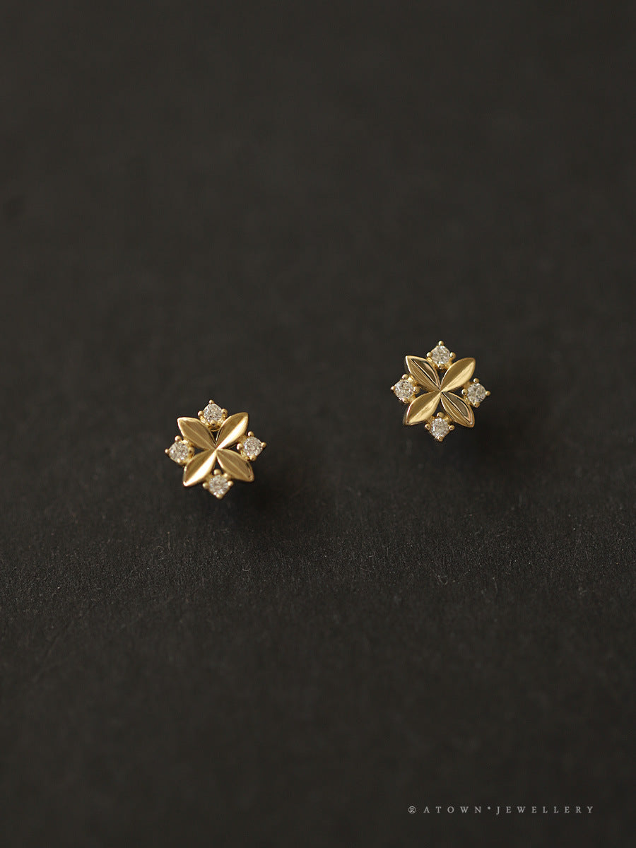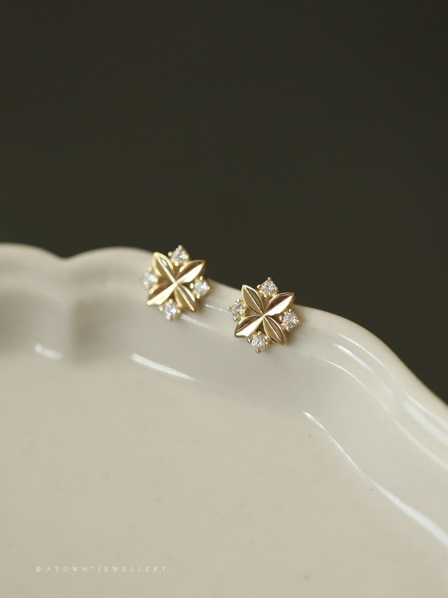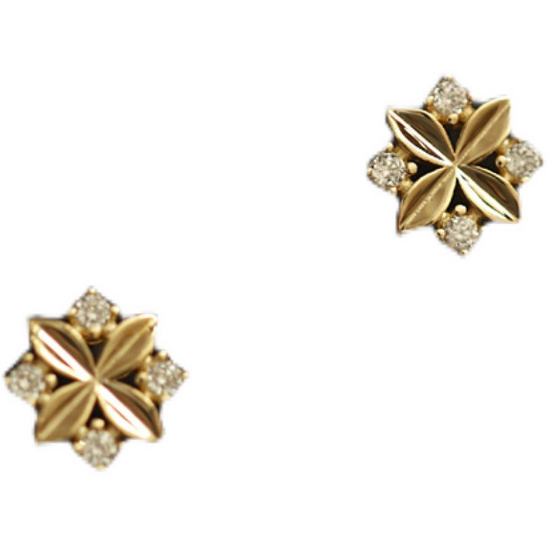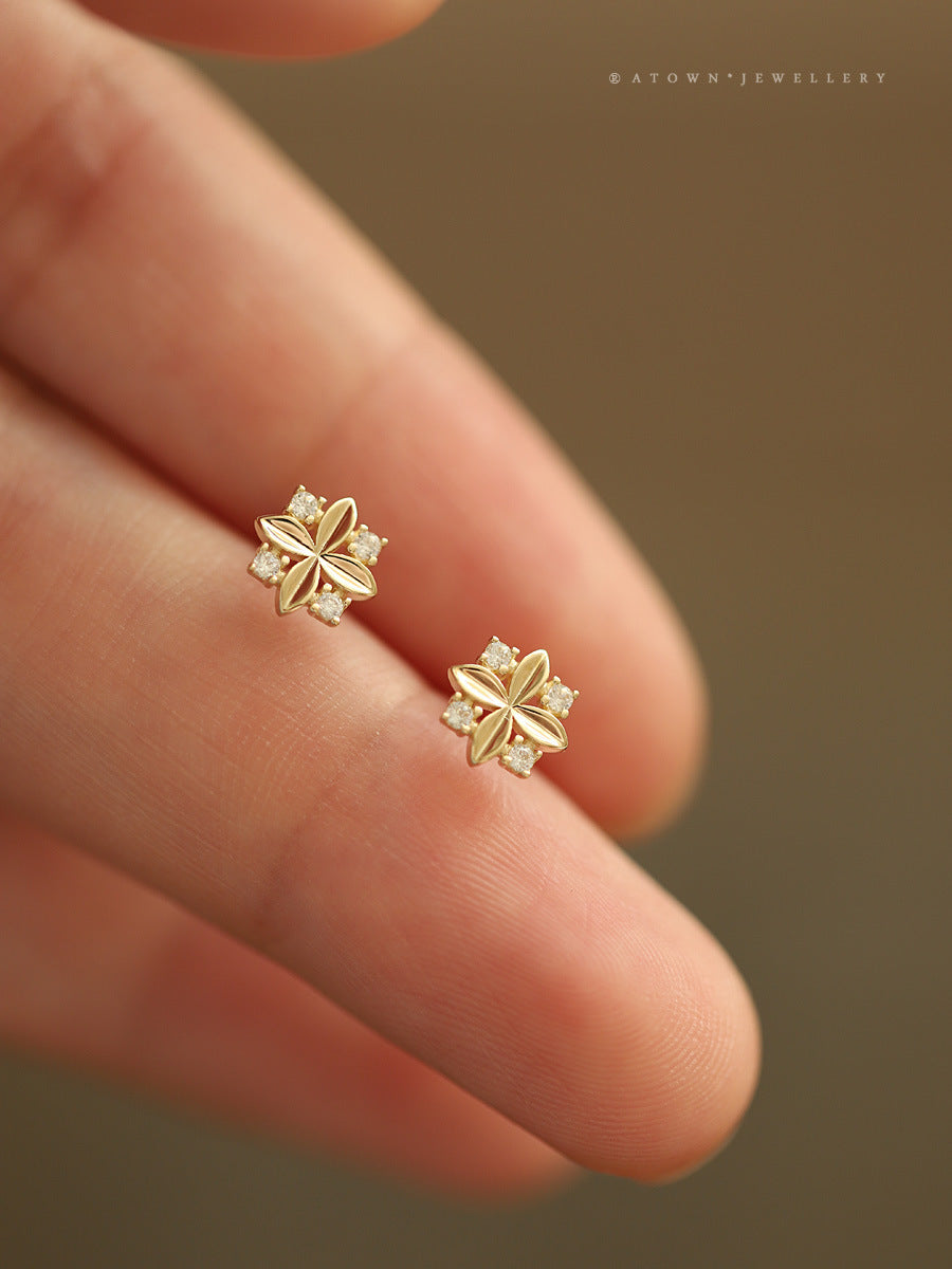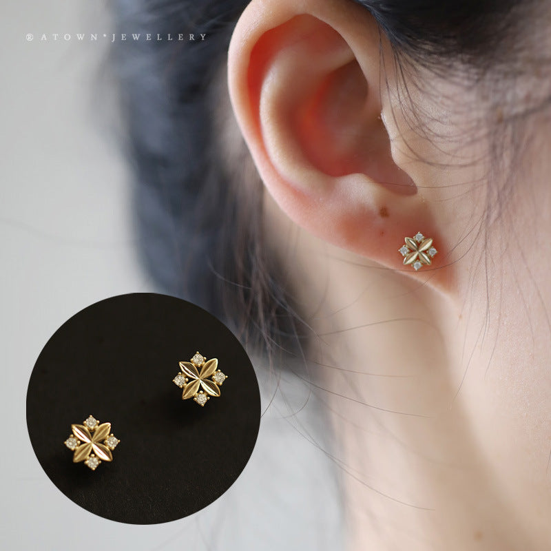 14K gold plated earrings rhombus zircon cross small flower temperament ins style niche new earrings Japanese and Korean