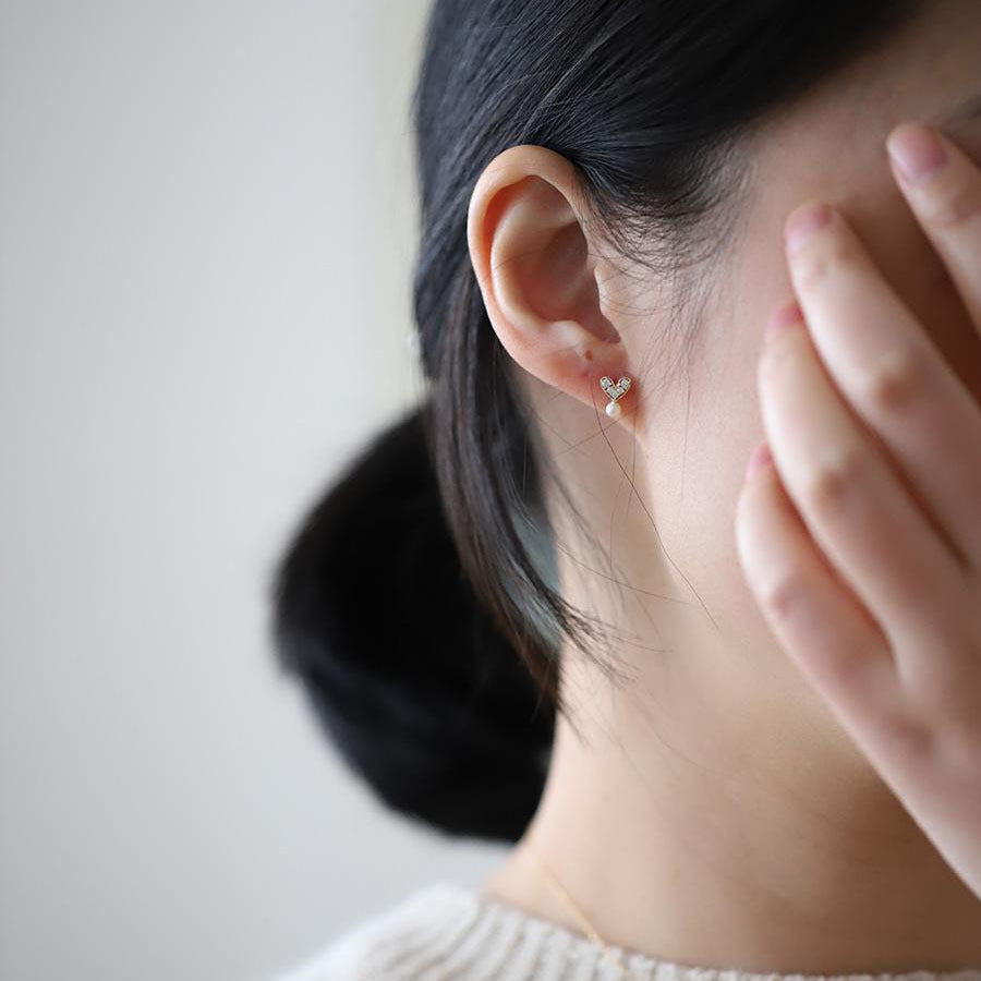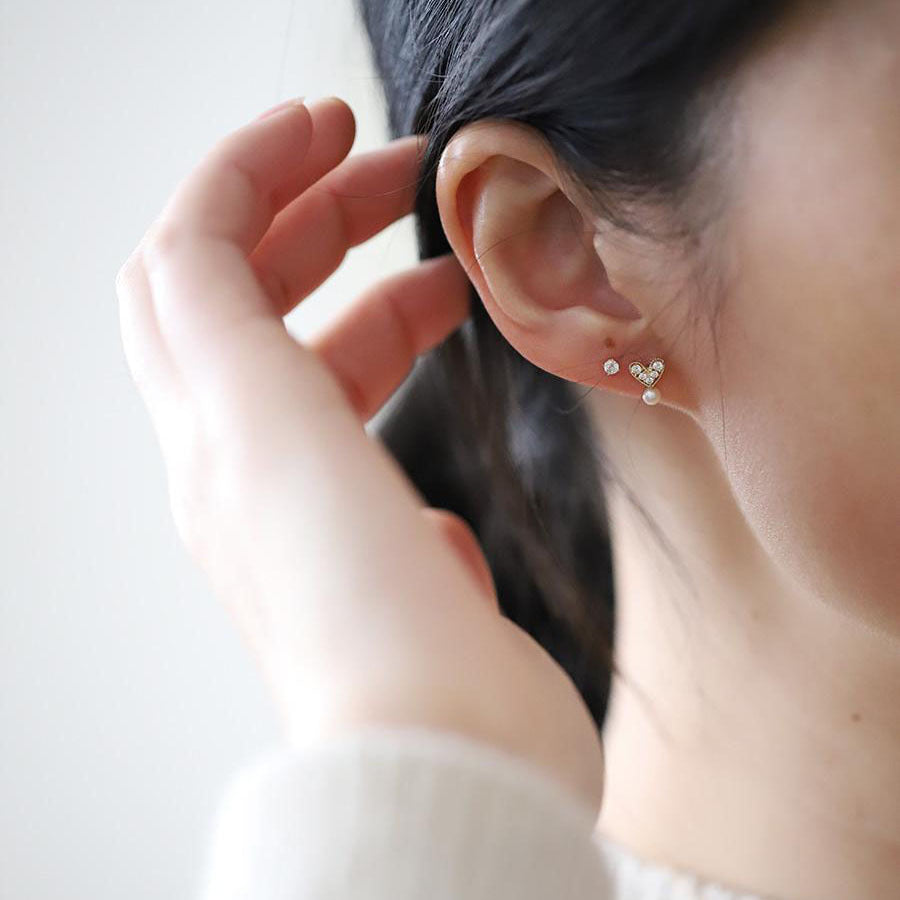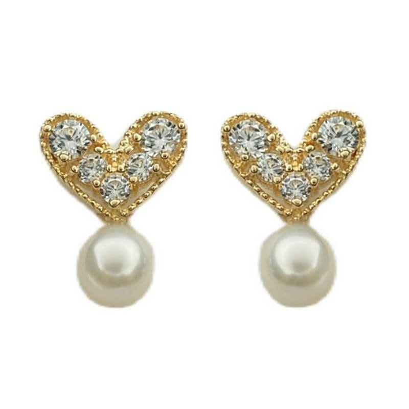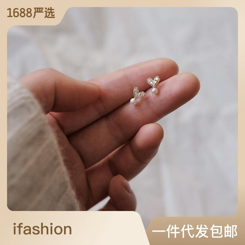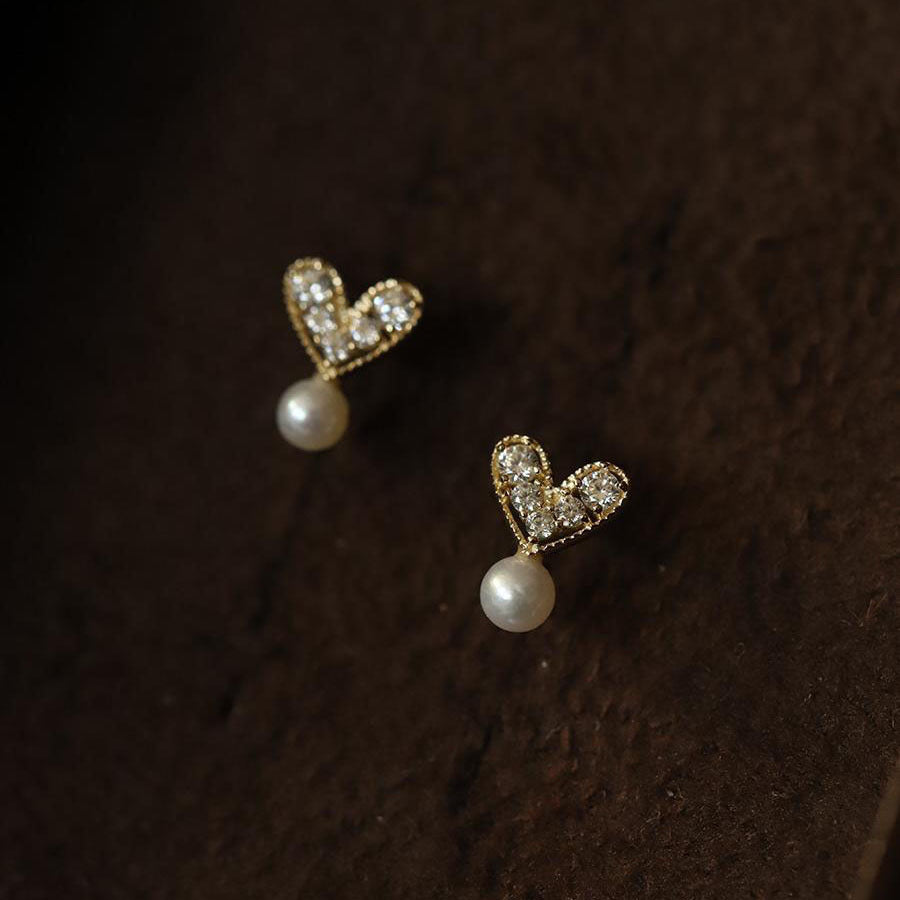 14K gold plated earrings zircon love freshwater pearl elegant Japanese and Korean ins style diamond earrings women's earrings