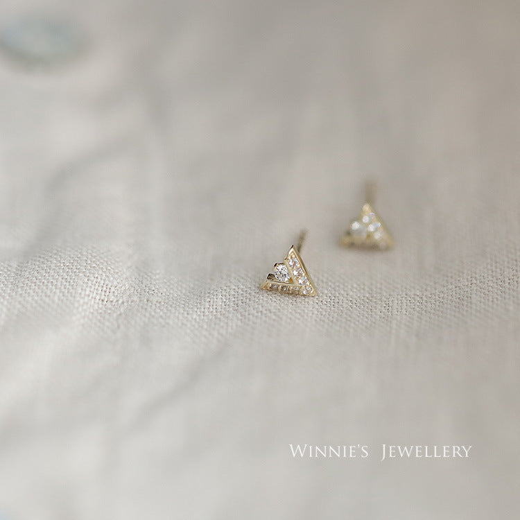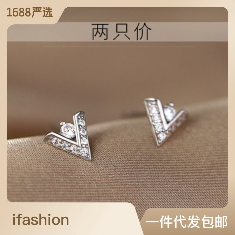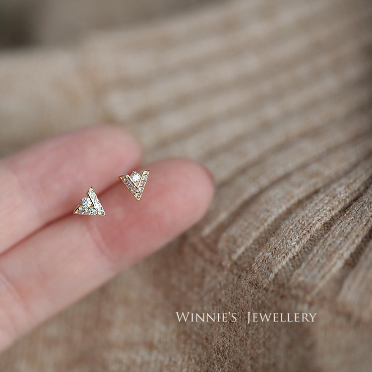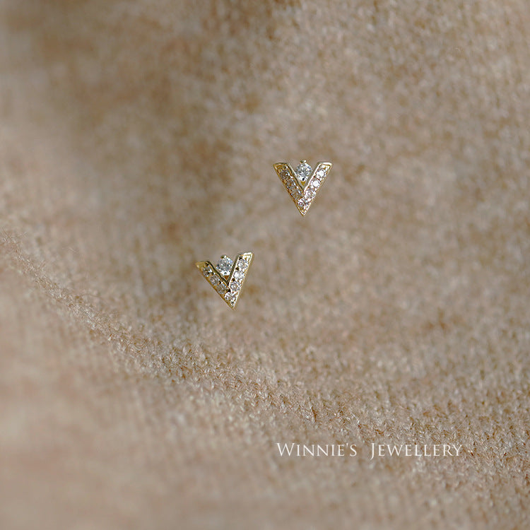 14k gold-plated light luxury style Japanese style full diamond V-shaped shape versatile style earrings earrings earrings copper other earrings