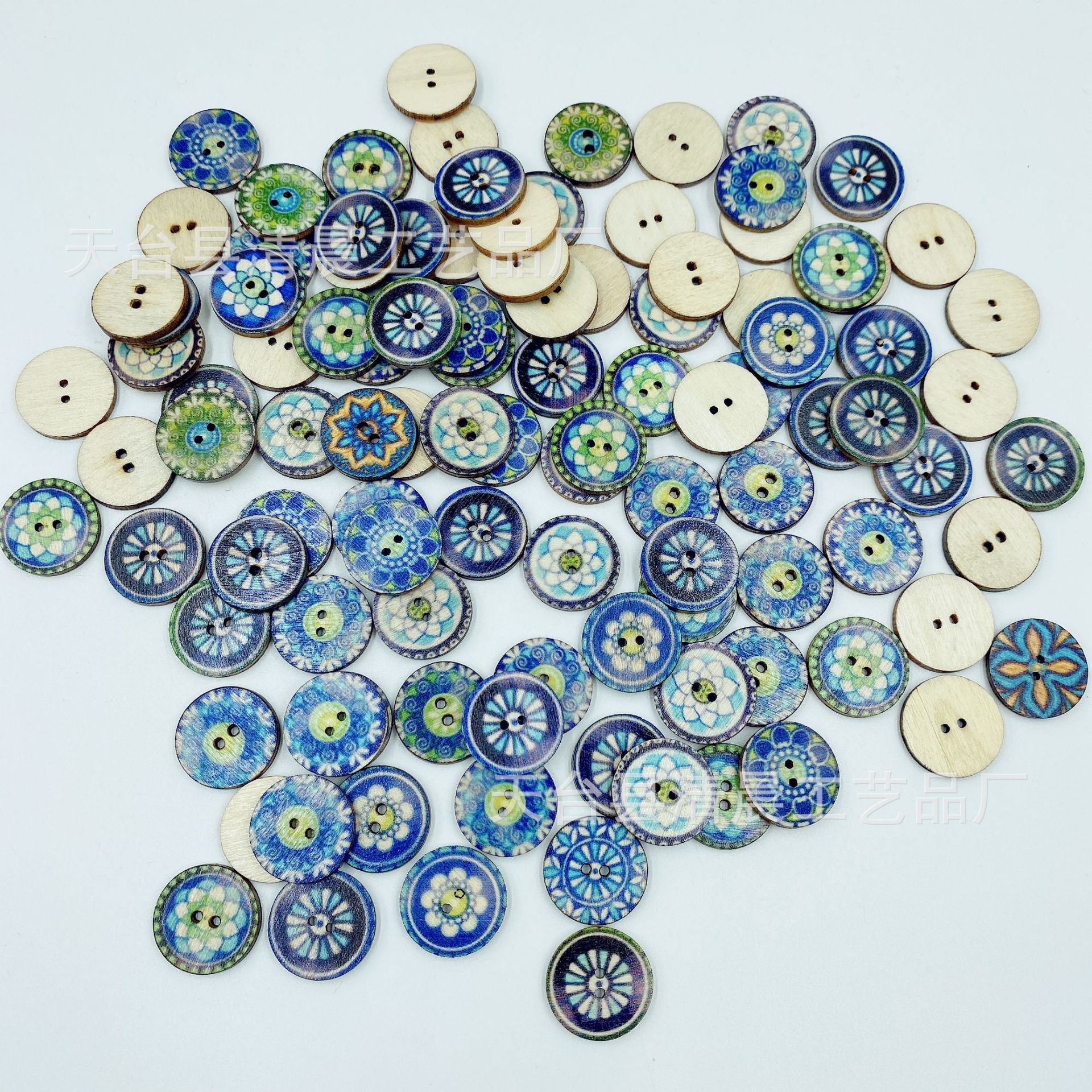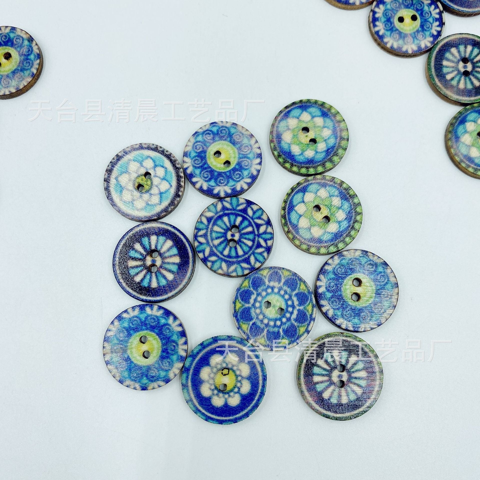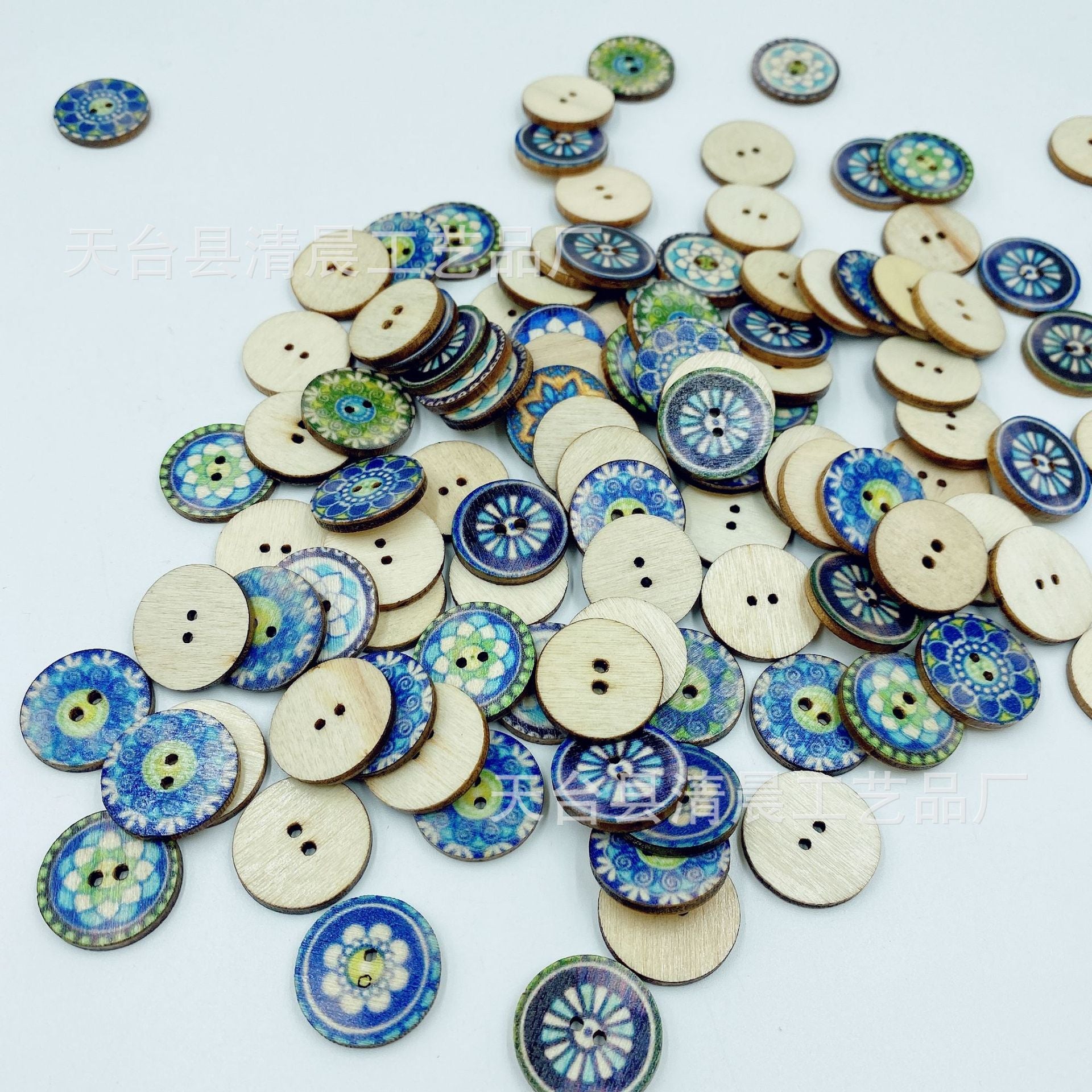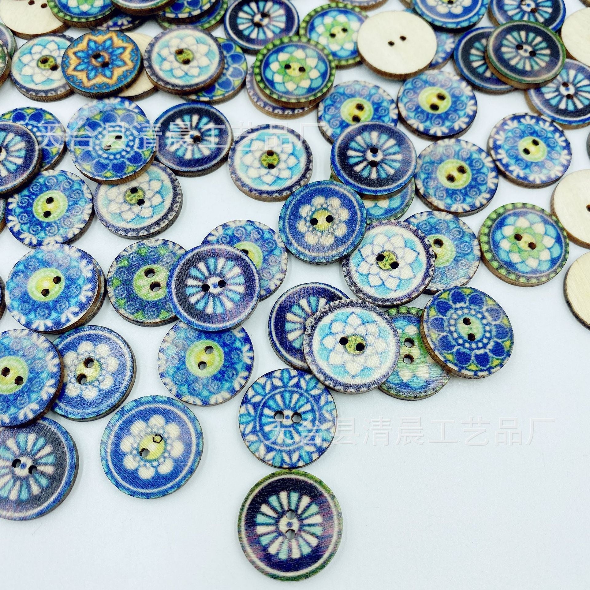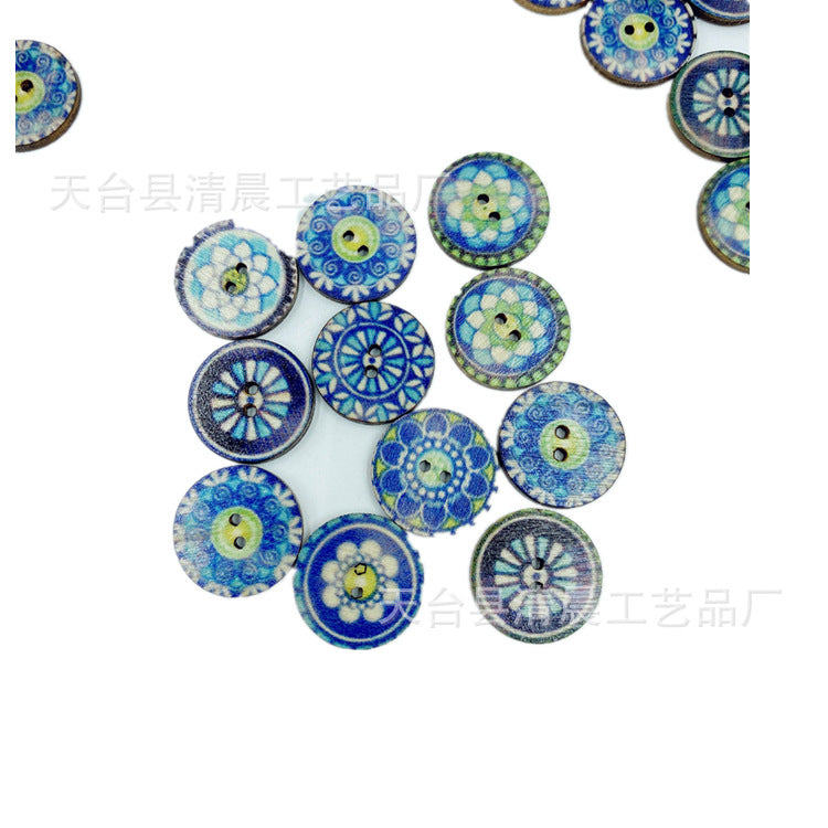 15/20/25mm blue round wooden button national retro style wooden button wooden disc decorative accessories