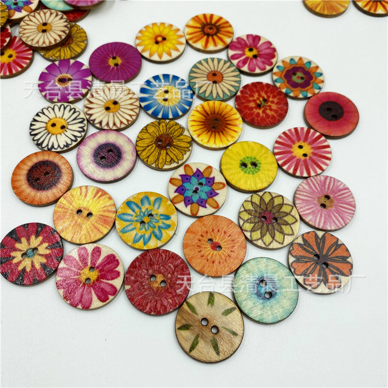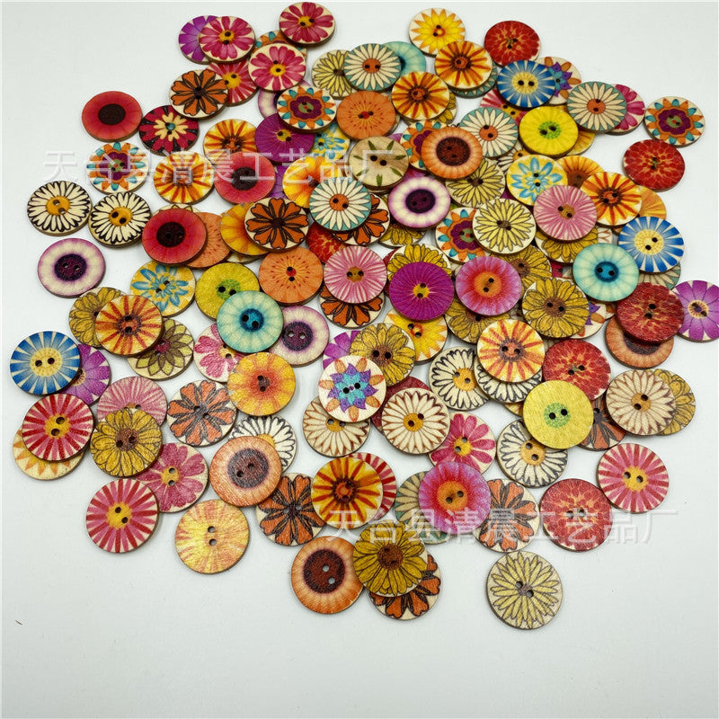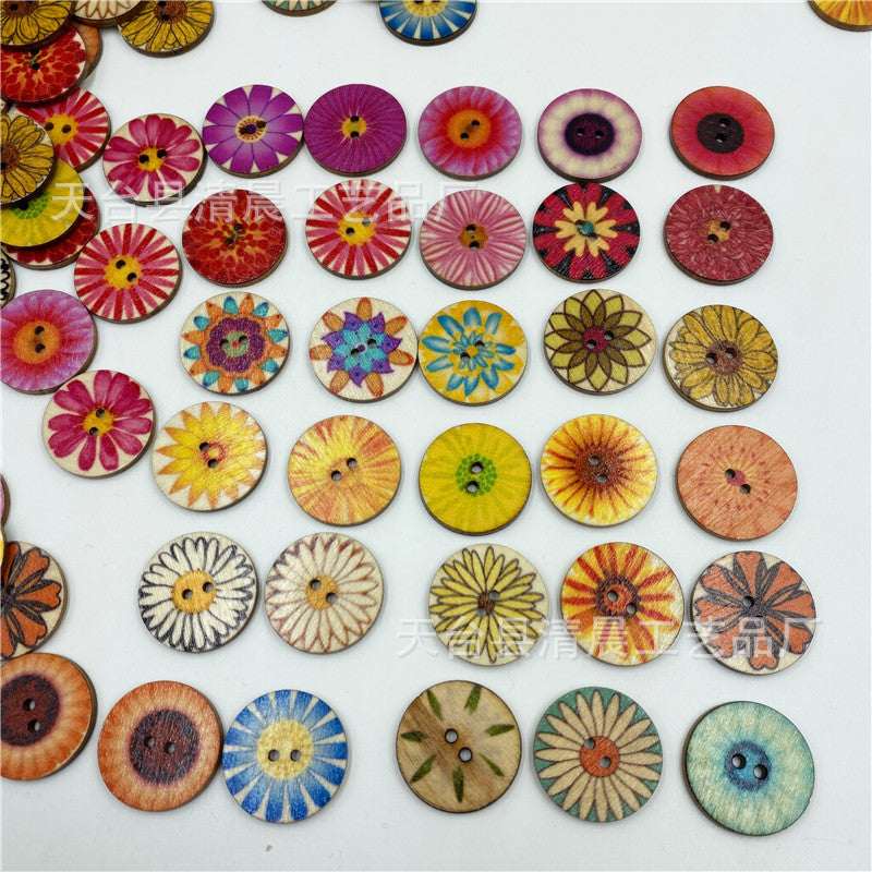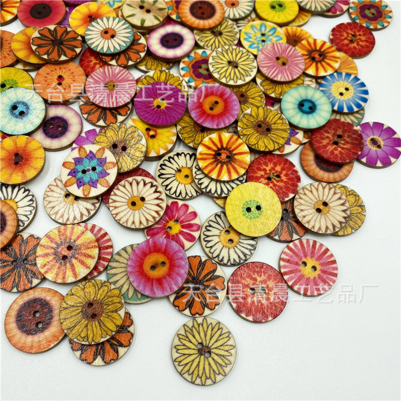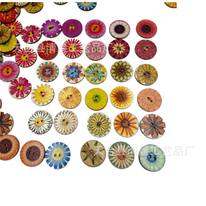 15/20/25mm painted and printed round wood buttons chrysanthemum series round wooden buttons DIY decorative wooden buttons
