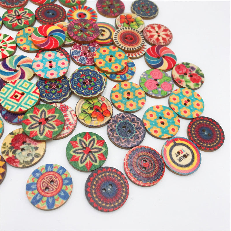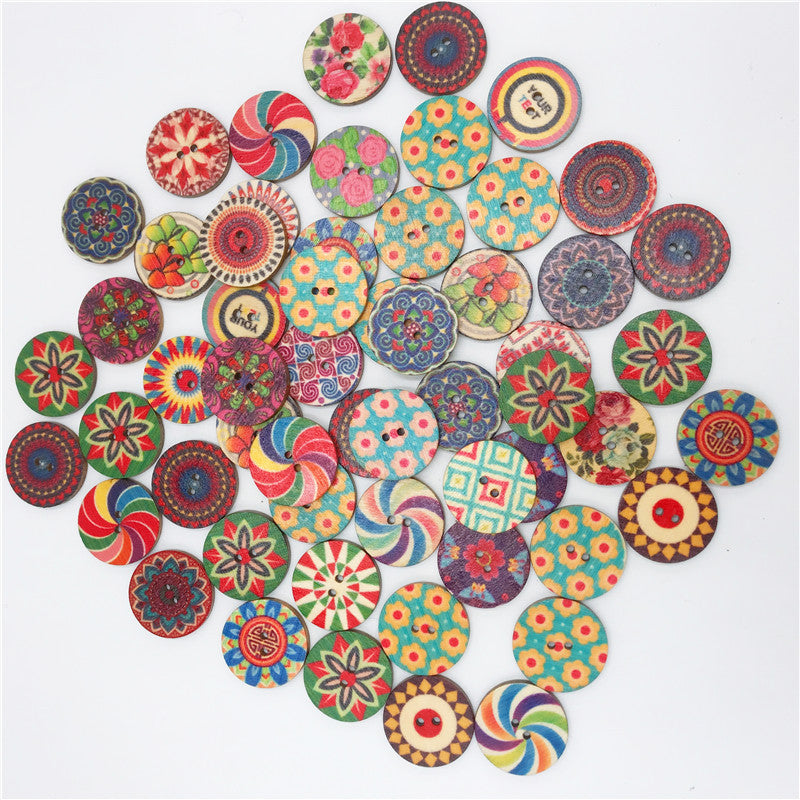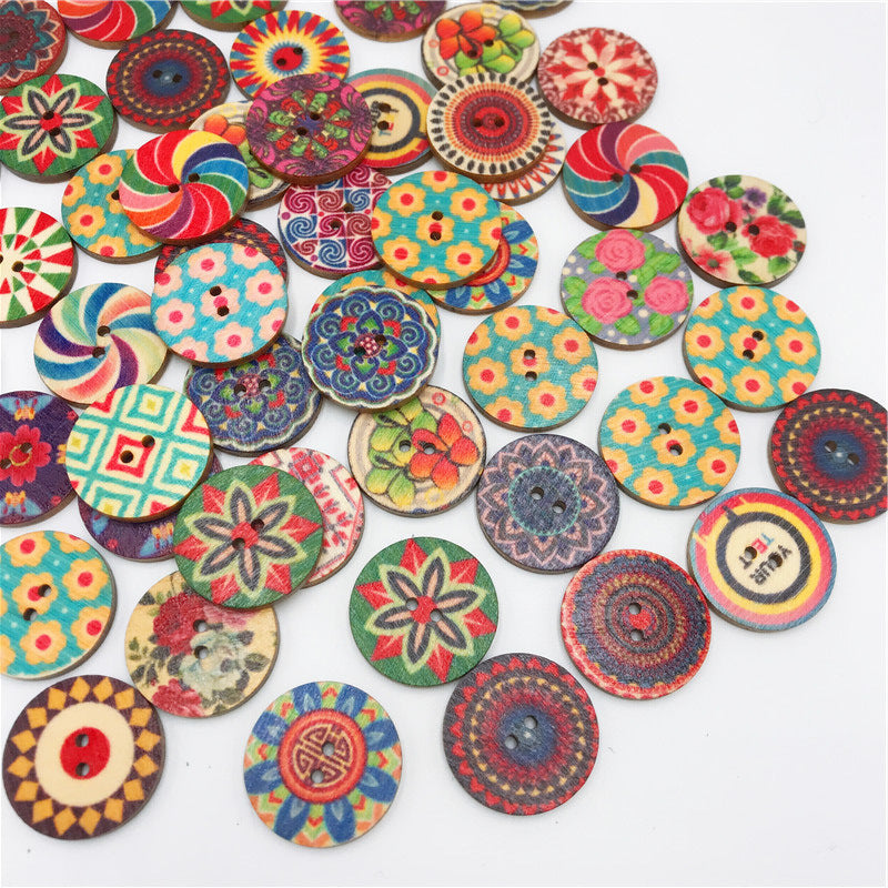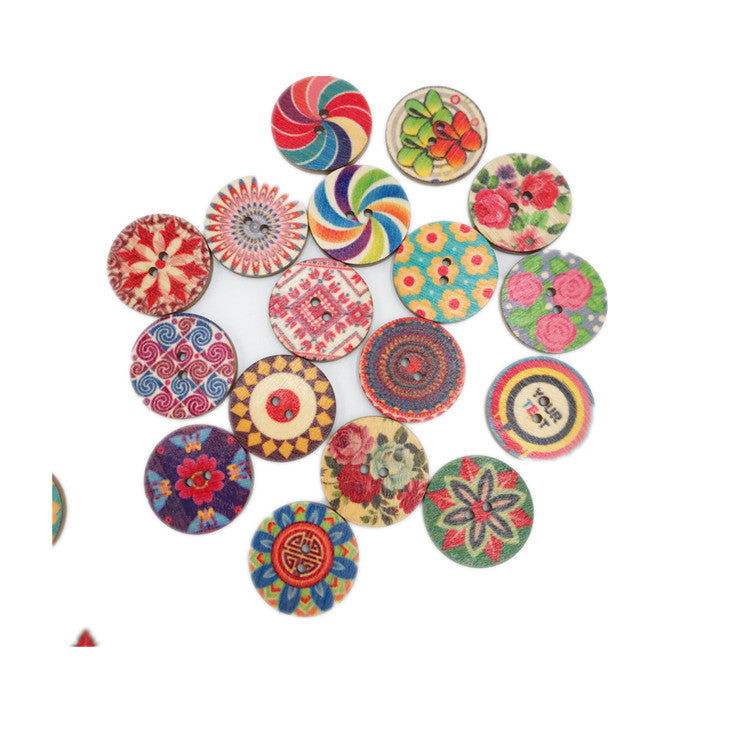 15/20/25MM Round Chip Wooden Button Retro Printed Wooden Button DIY Decorative Wood Chip