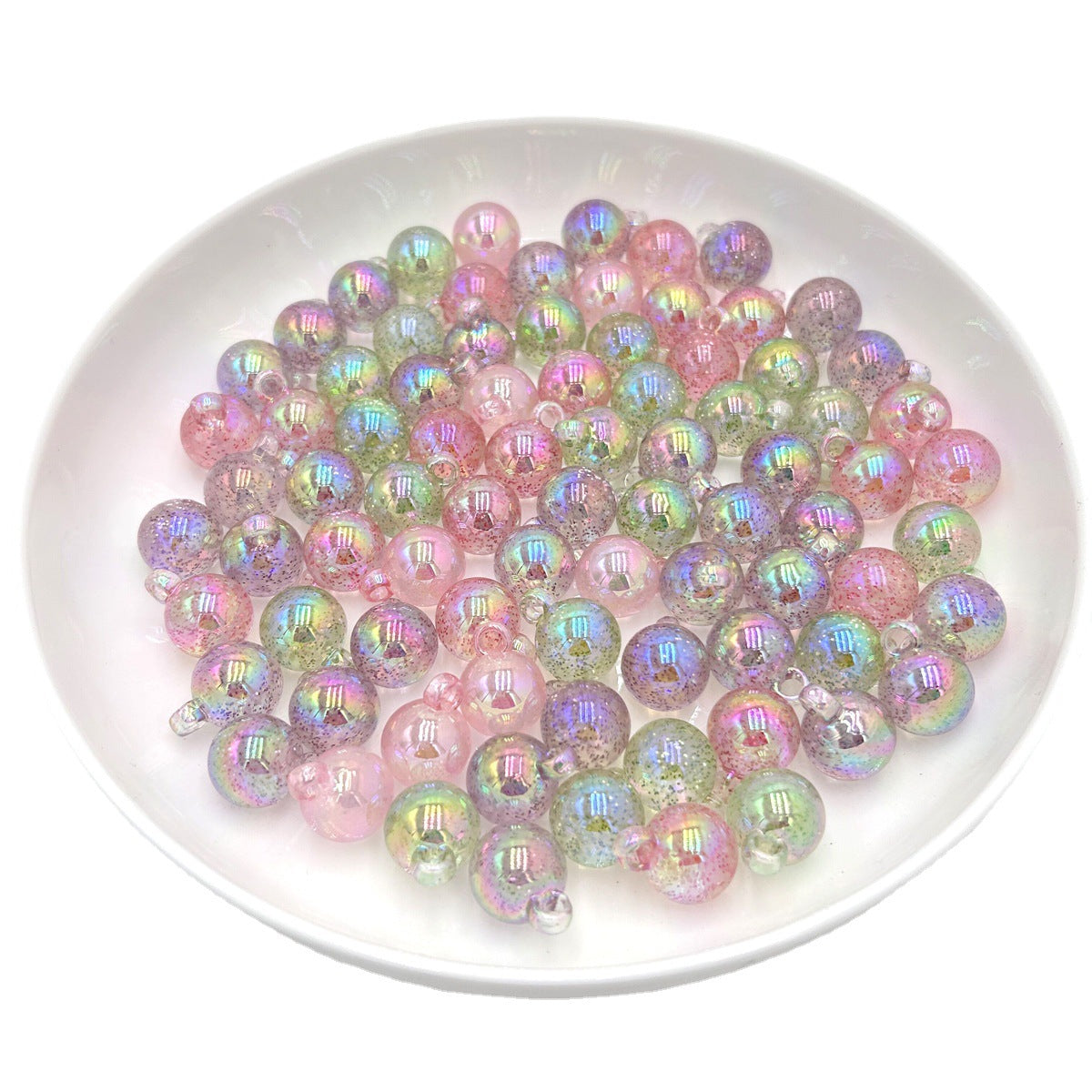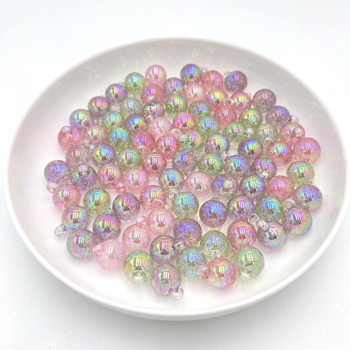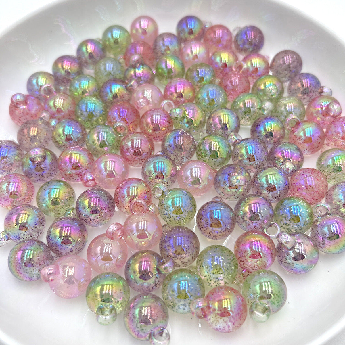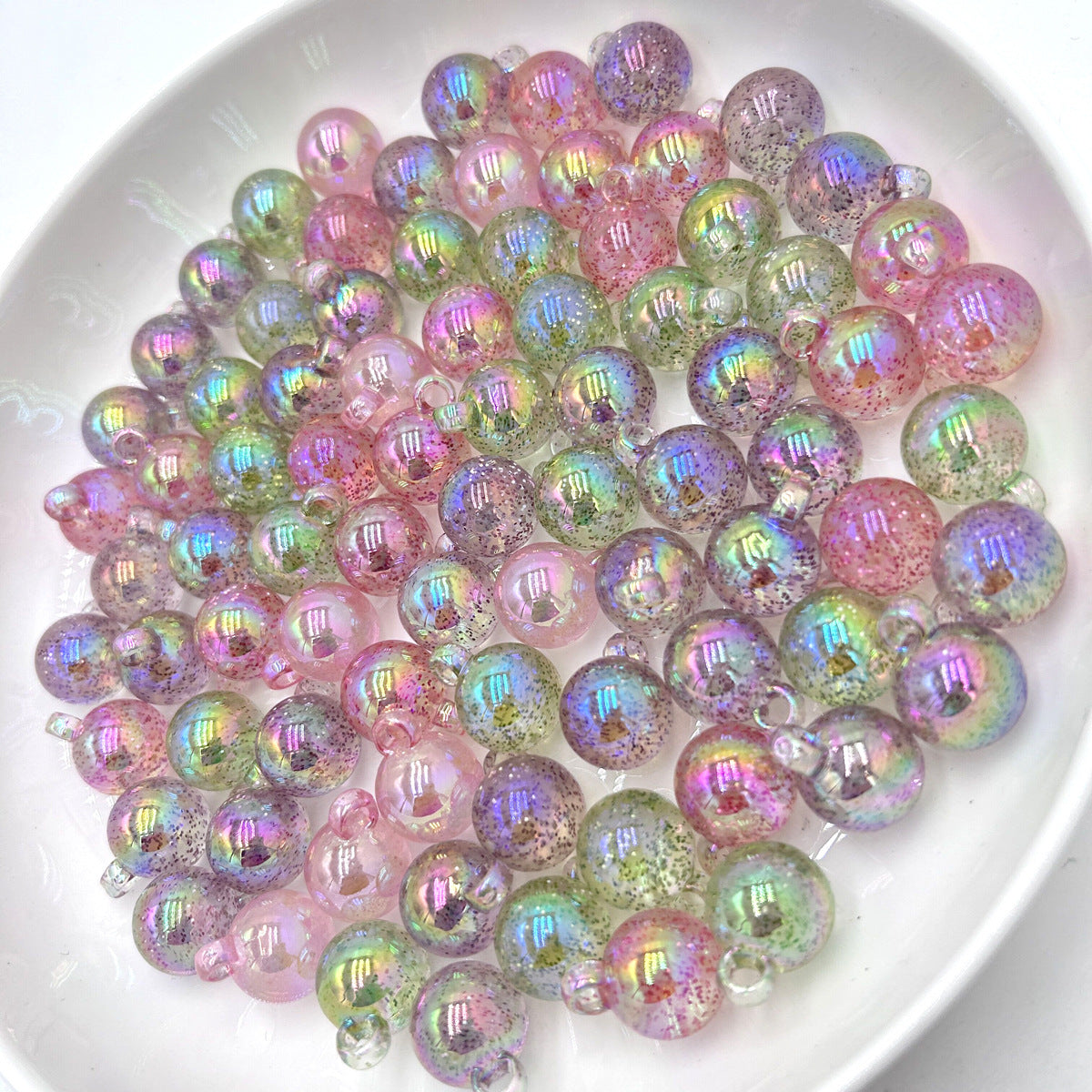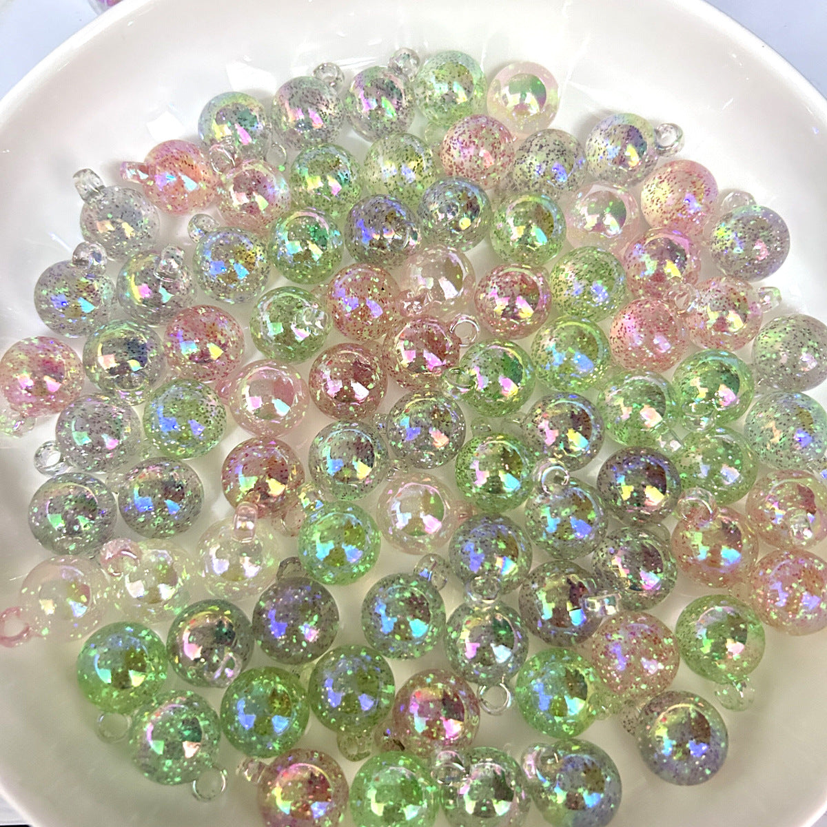 16mm acrylic luminous green onion powder hanging hole round beads vibrating live broadcast loose beads DIY mobile phone chain car hanging accessories