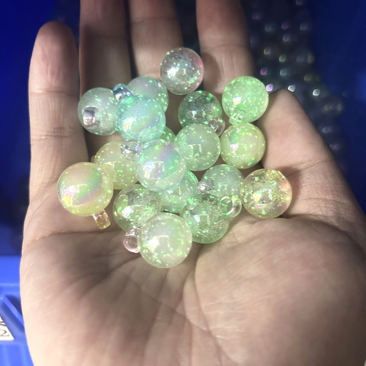 16mm snowflake luminous bubble hanging hole round beads shake sound live DIY mobile phone chain car hanging hair rope with beads