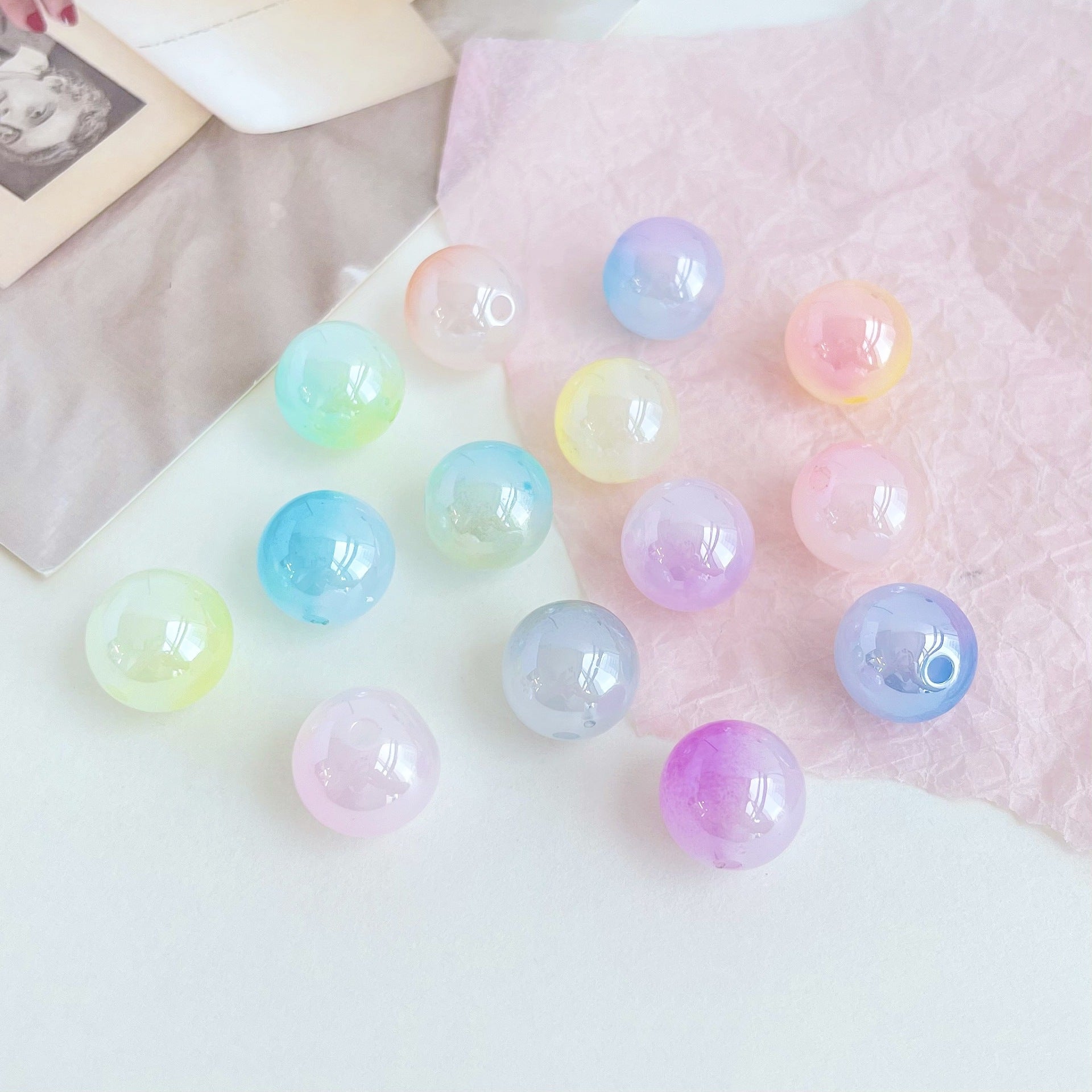 16mm two-color glass beads gradient dispersion beads handmade diy hand string accessories wholesale necklace jewelry beading