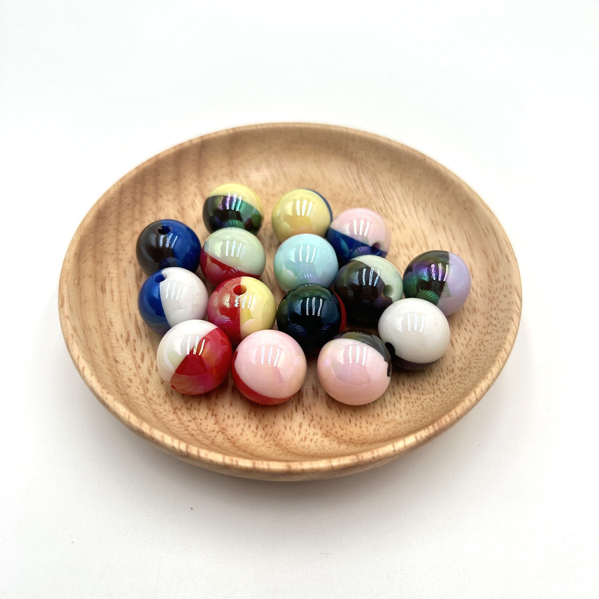 16mmUV electroplating acrylic Pokémon ball two-color round beads DIY pendant mobile phone chain car hanging beads