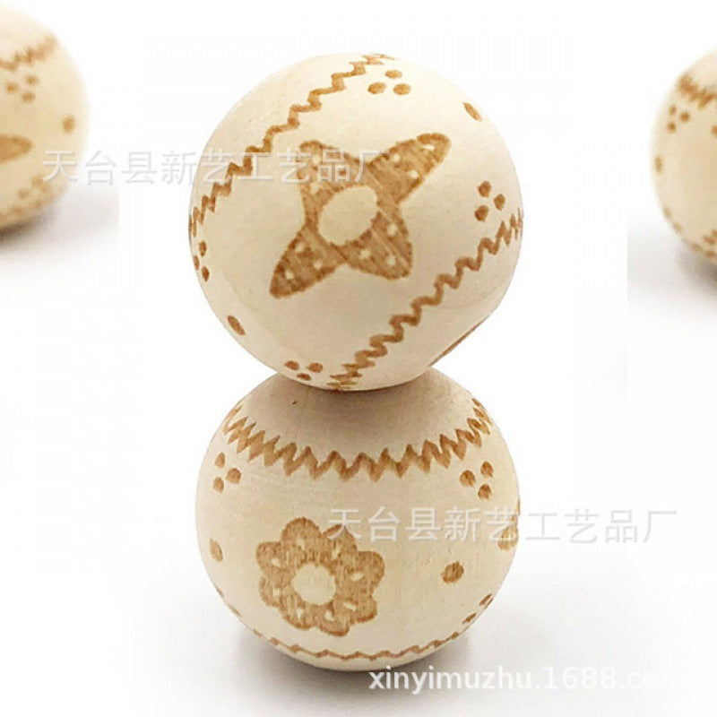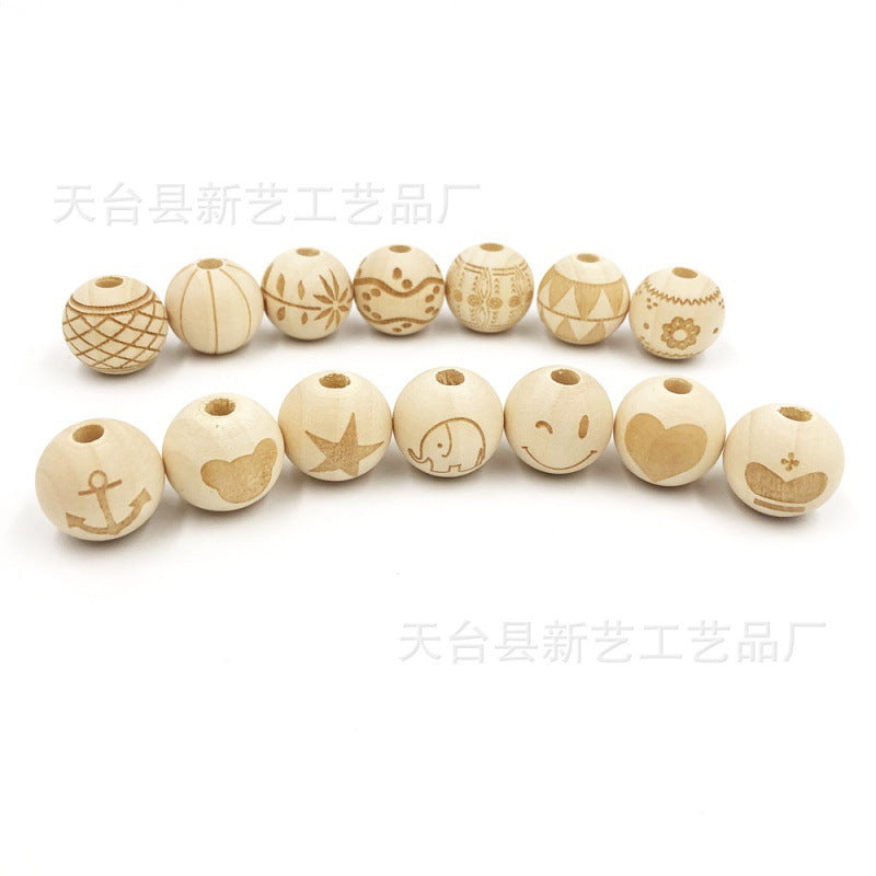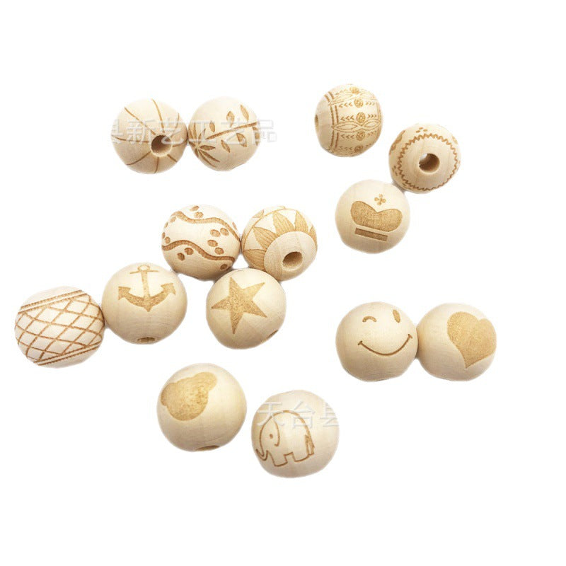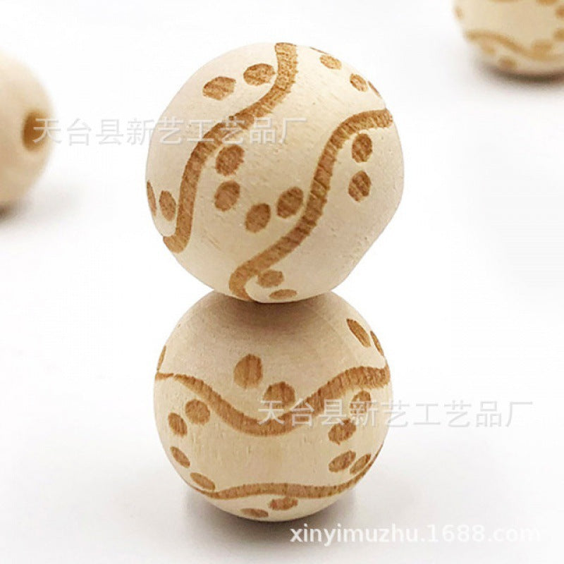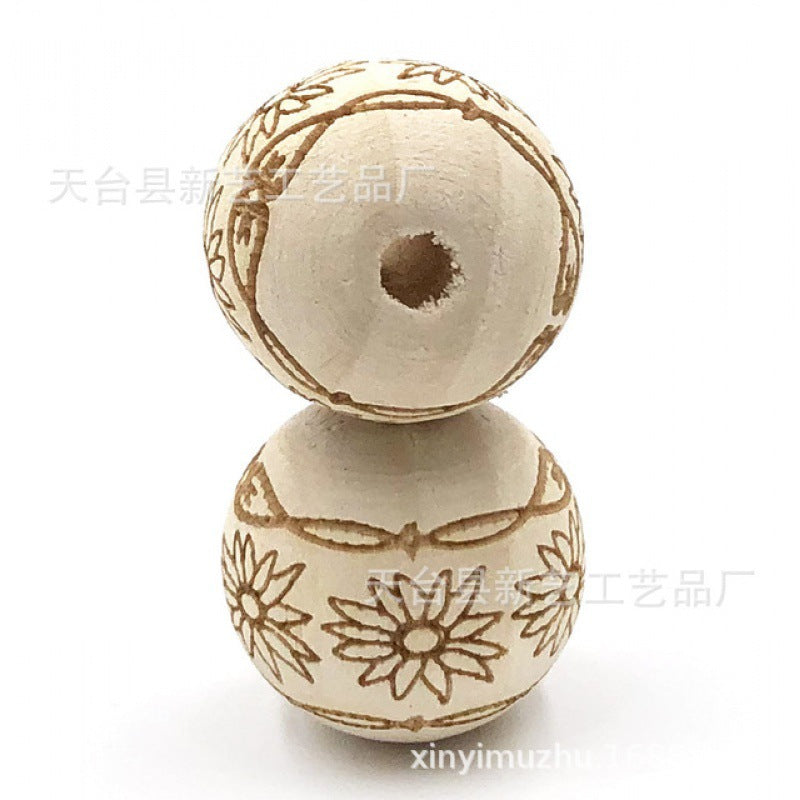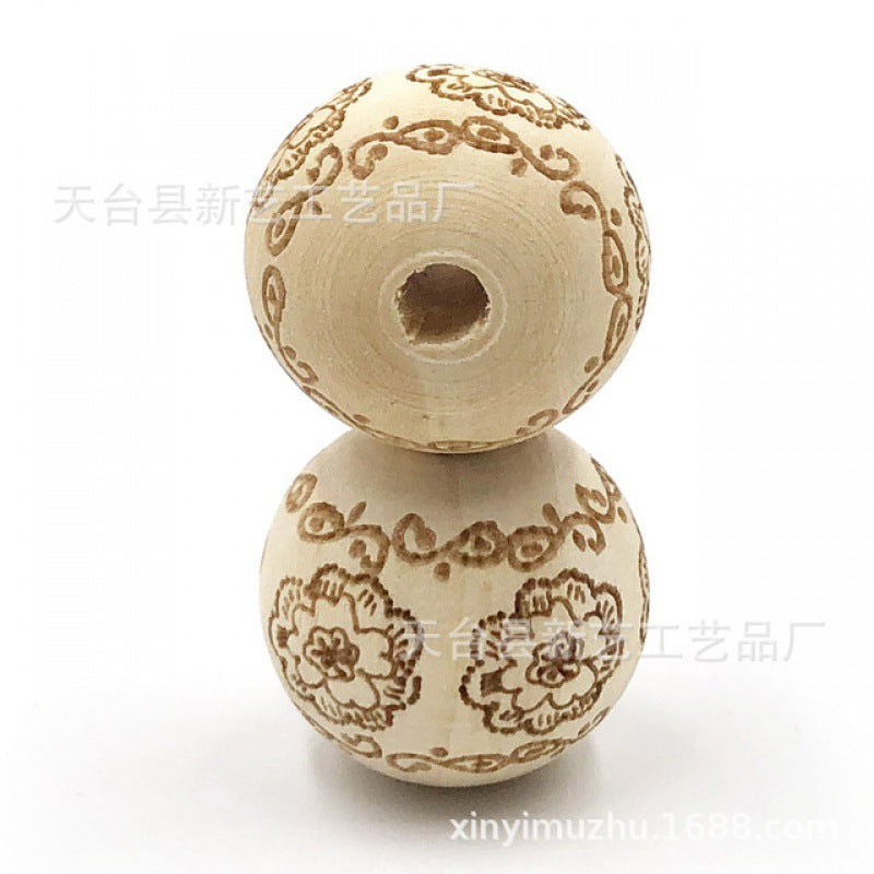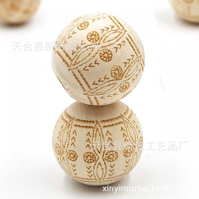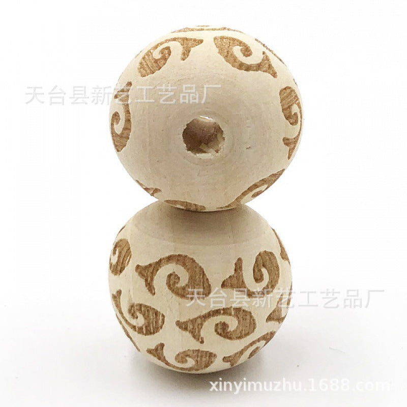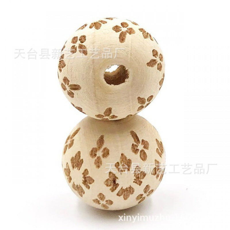 18-20mm lotus wood beads log loose beads cartoon engraved laser round beads diy Hemu jewelry accessories wooden beads