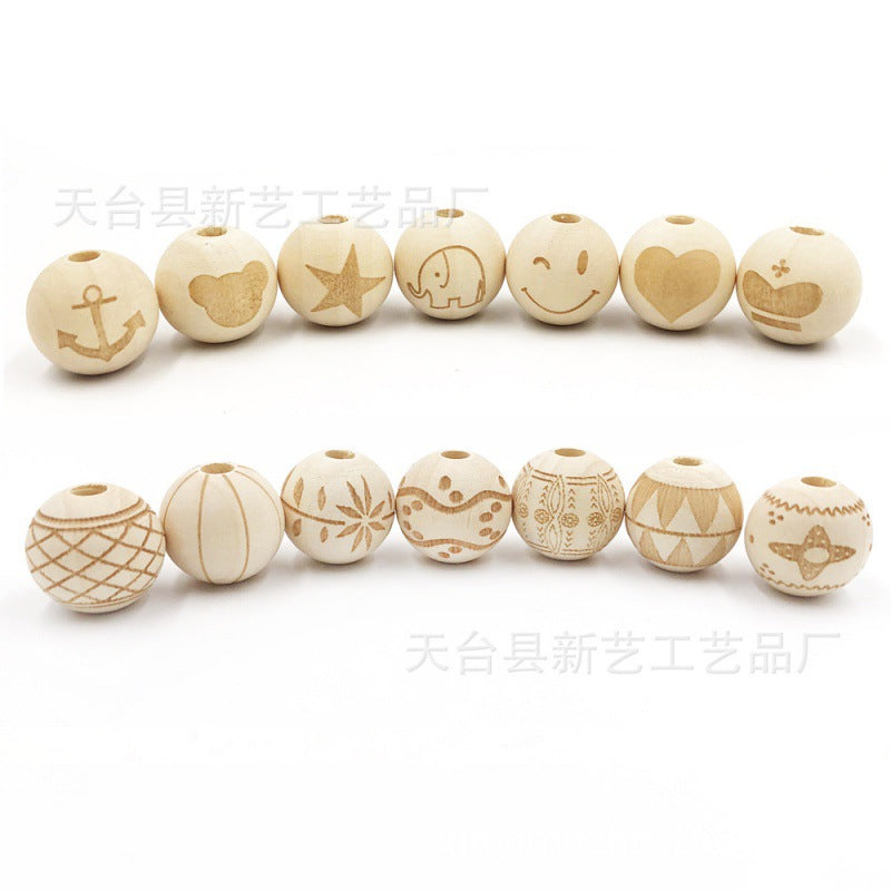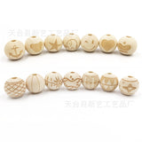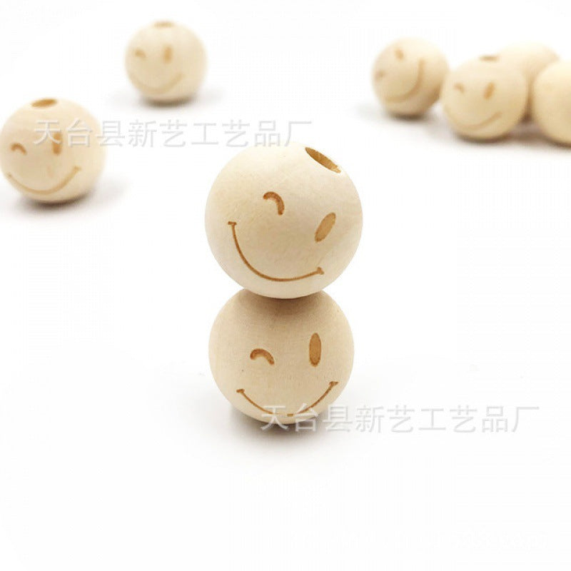 18-20mm lotus wood beads log loose beads cartoon smiling face engraved laser round beads diy Hemu jewelry accessories