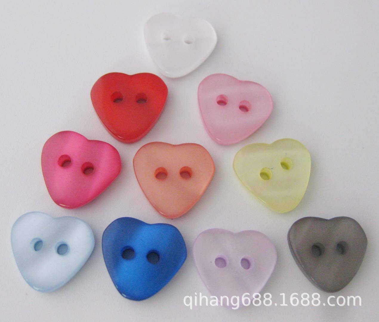 18L resin two-eye heart-shaped button pearlescent love shirt button children's clothing button hole shoes decorative button