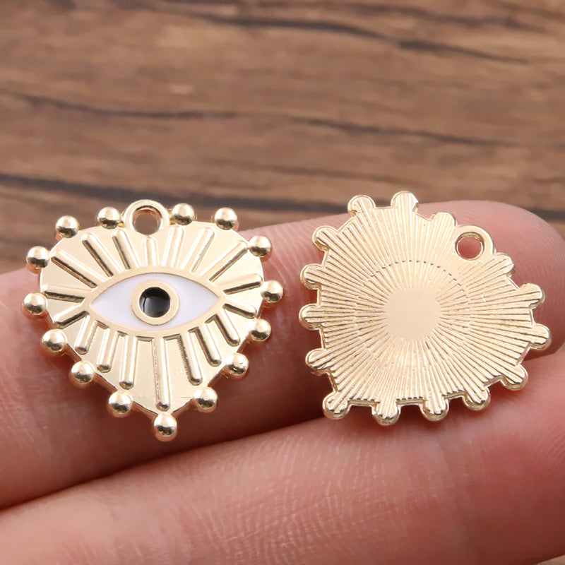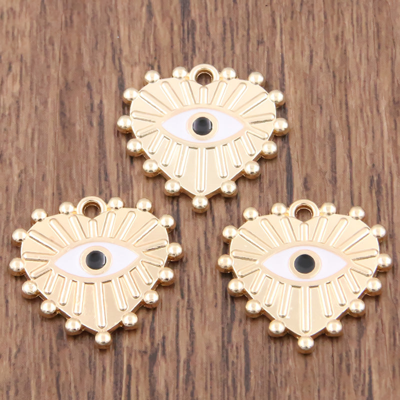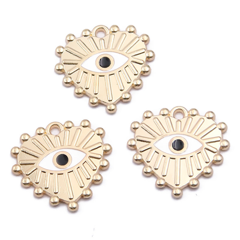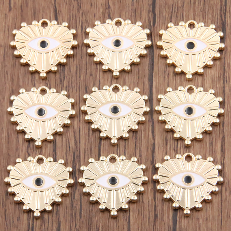 19*20mm DIY Alloy Jewelry Accessories KC Gold Heart Turkey Eye Oil Drip Pendant Mobile Phone Accessories