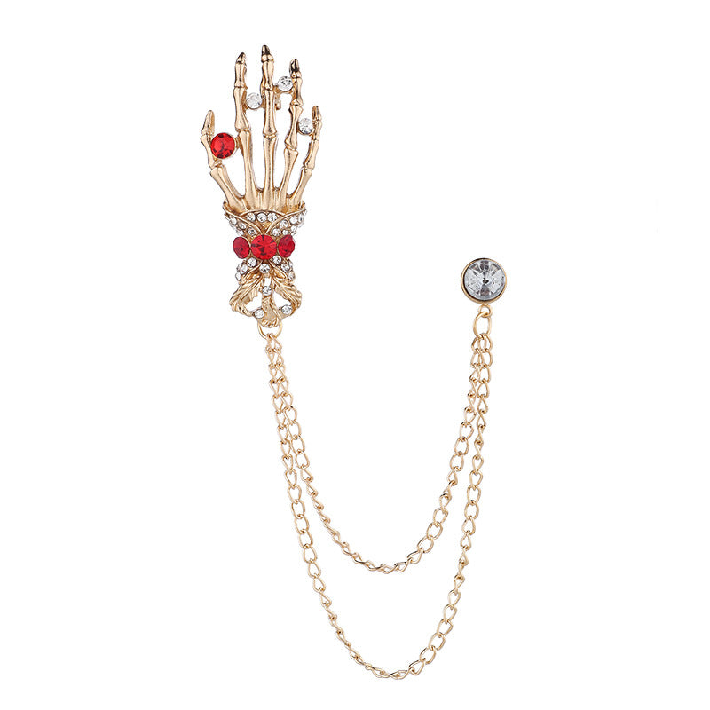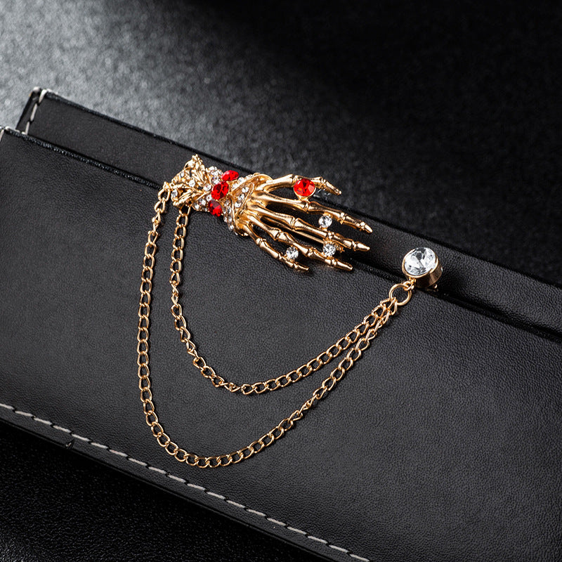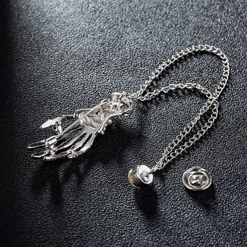 19 New Men's Retro British Skull Hand Collar Chain Brooch Corsage Suit Collar Trendy Badge Accessories Female