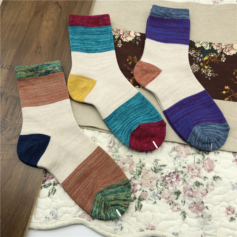 19 Spring and Autumn Style Japanese Retro Cotton Mid-tube Women's Socks Mori Line Casual Cotton Socks Heel Reinforced Socks