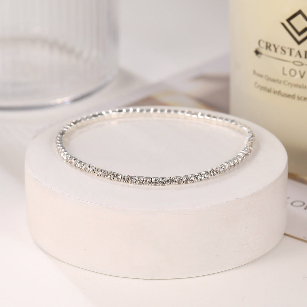 2.0mm Superfine S6 Rhinestone Bracelet Stretch Korean Style Single Row Flash Diamond Stretch Fashion Simple Summer Crystal Bracelet