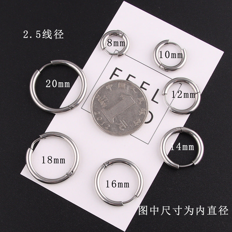 2.5 wire diameter earrings earrings men and women titanium steel earrings earrings earrings earrings round GD same style coil double-sided earrings