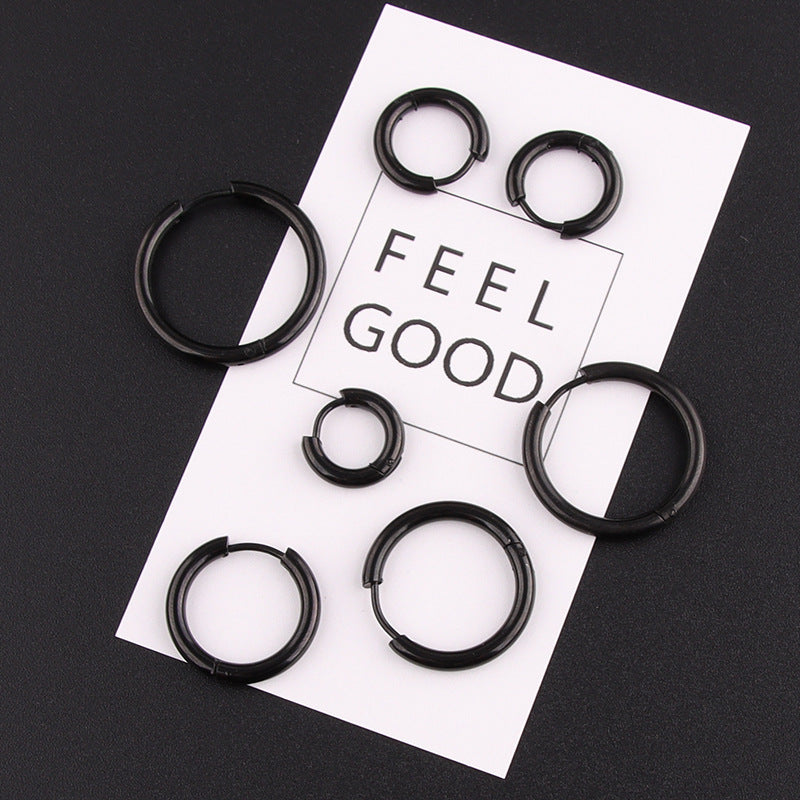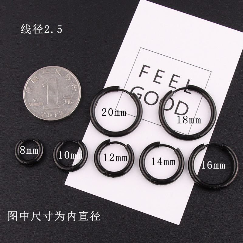 2.5 wire diameter titanium steel earrings earrings unisex earrings earrings do not fade round circle Korean black circle