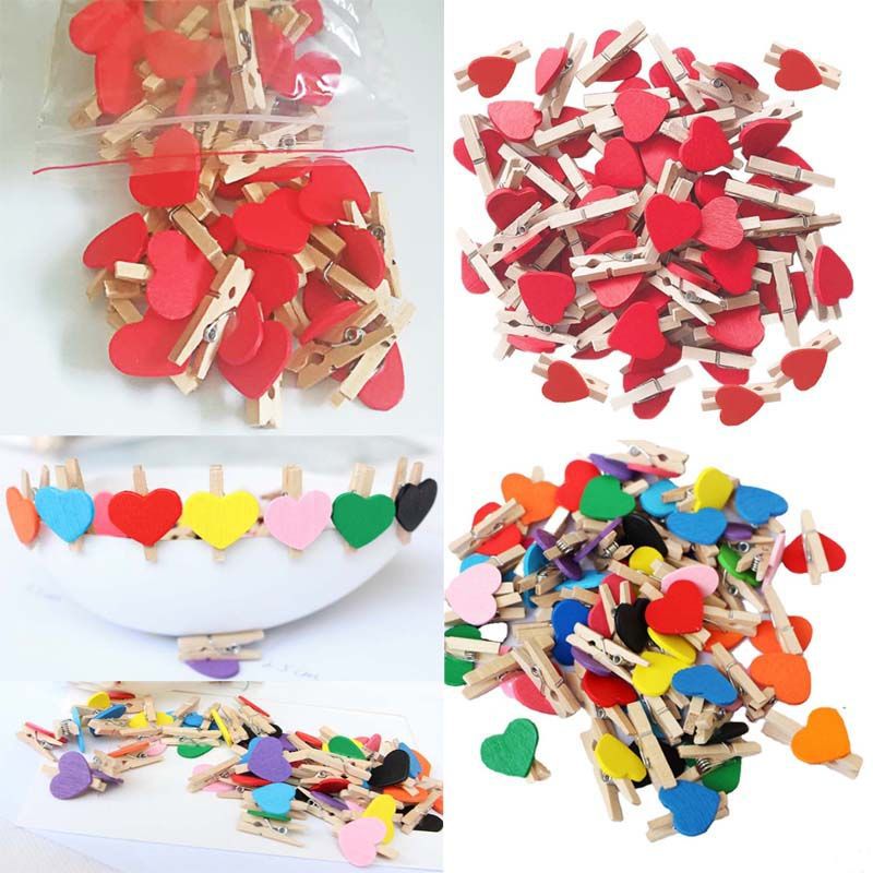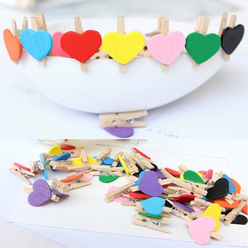 2.5cm red love wood pendant photo clip sticky note clip wooden clip color wall decoration love diy