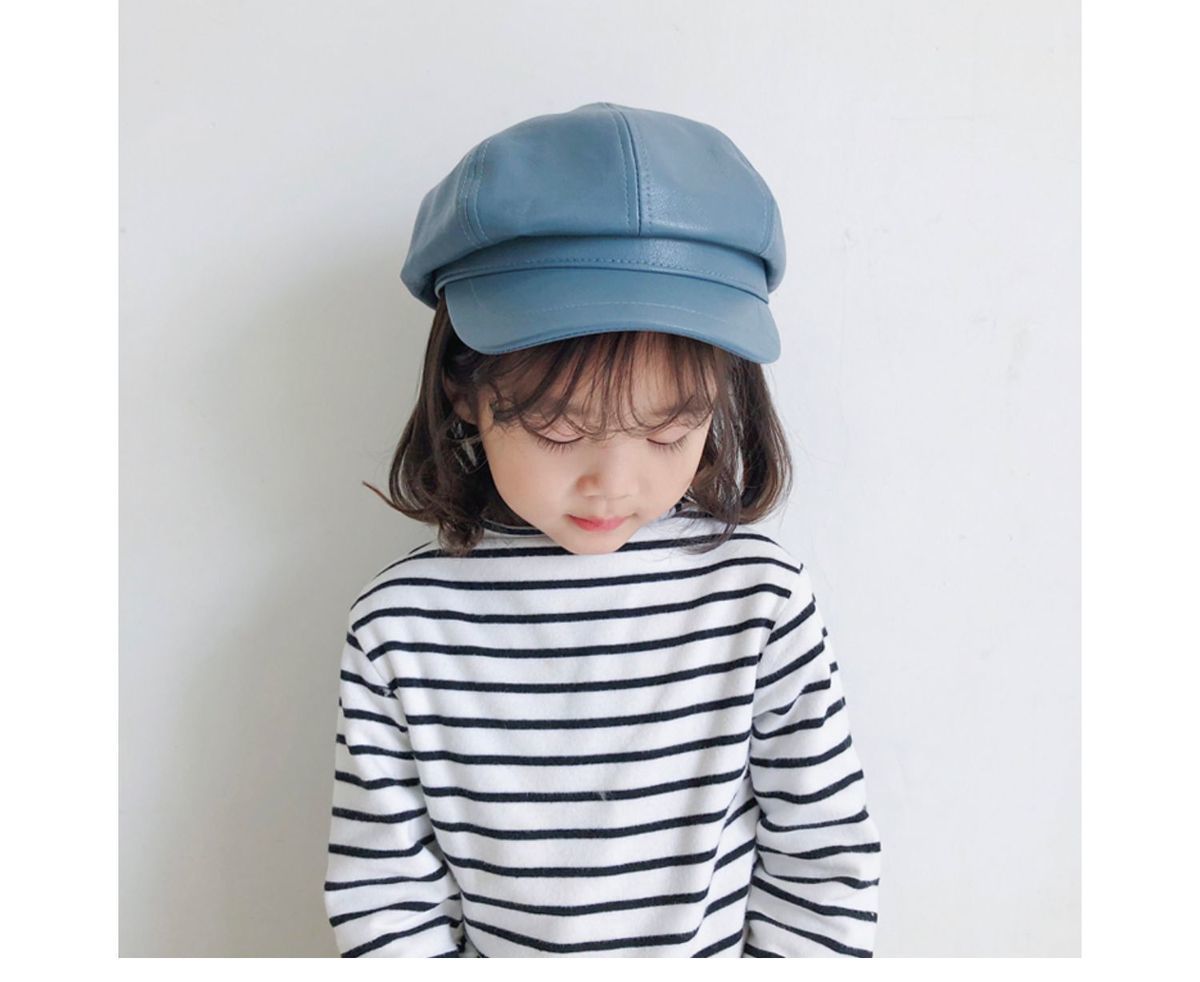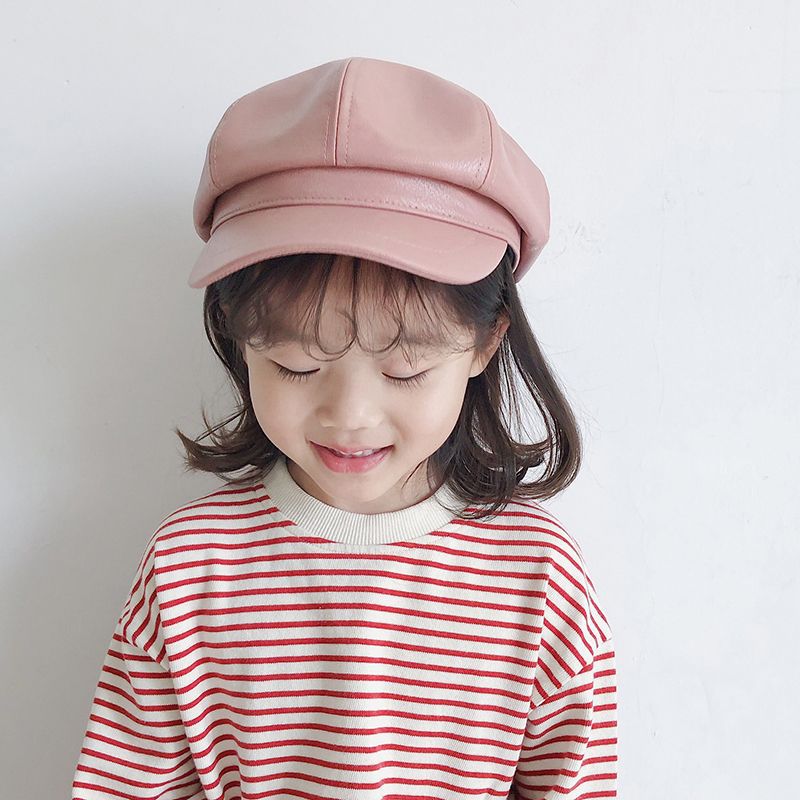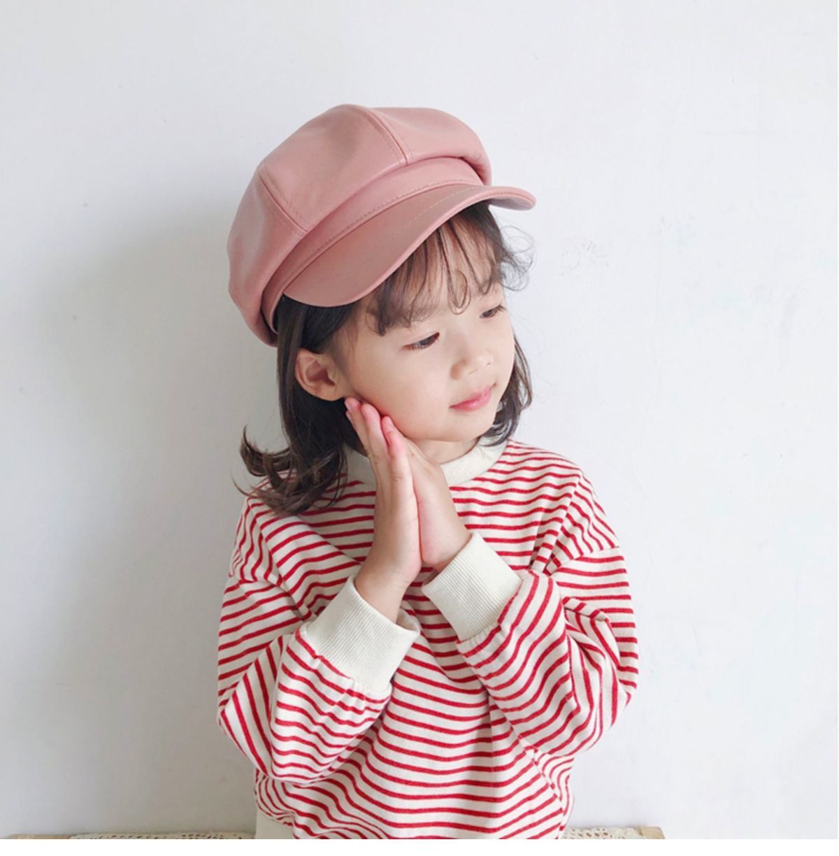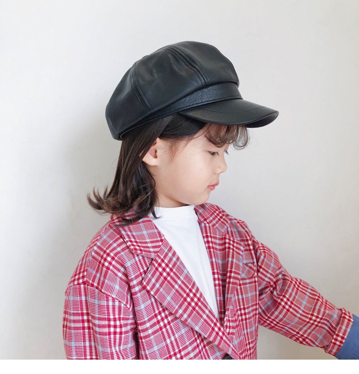 2-7 years old children's beret girls PU octagonal hat baby boy duck tongue parent-child painter newsboy hat autumn and winter