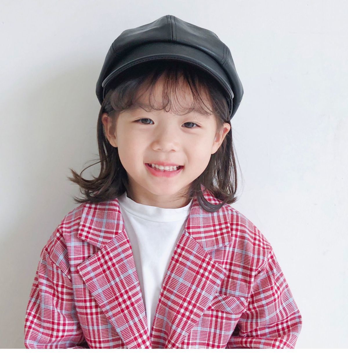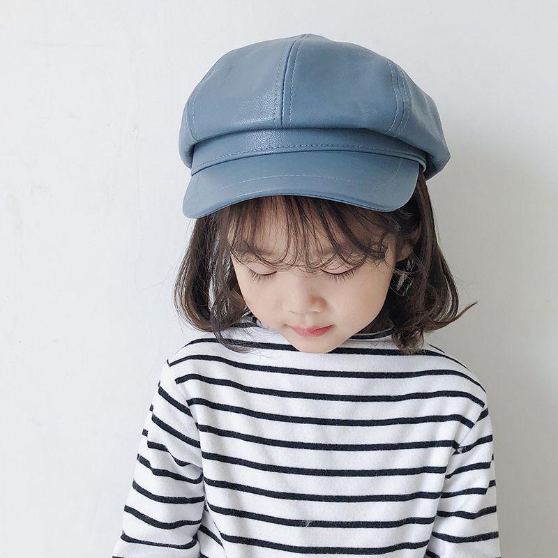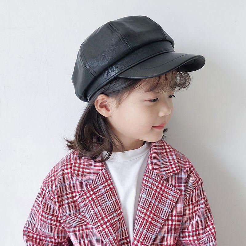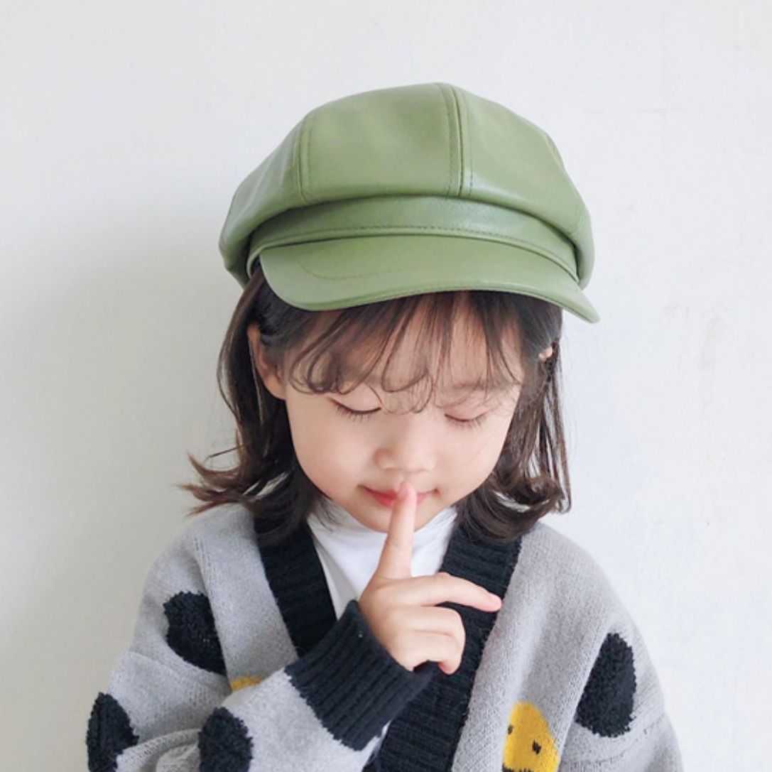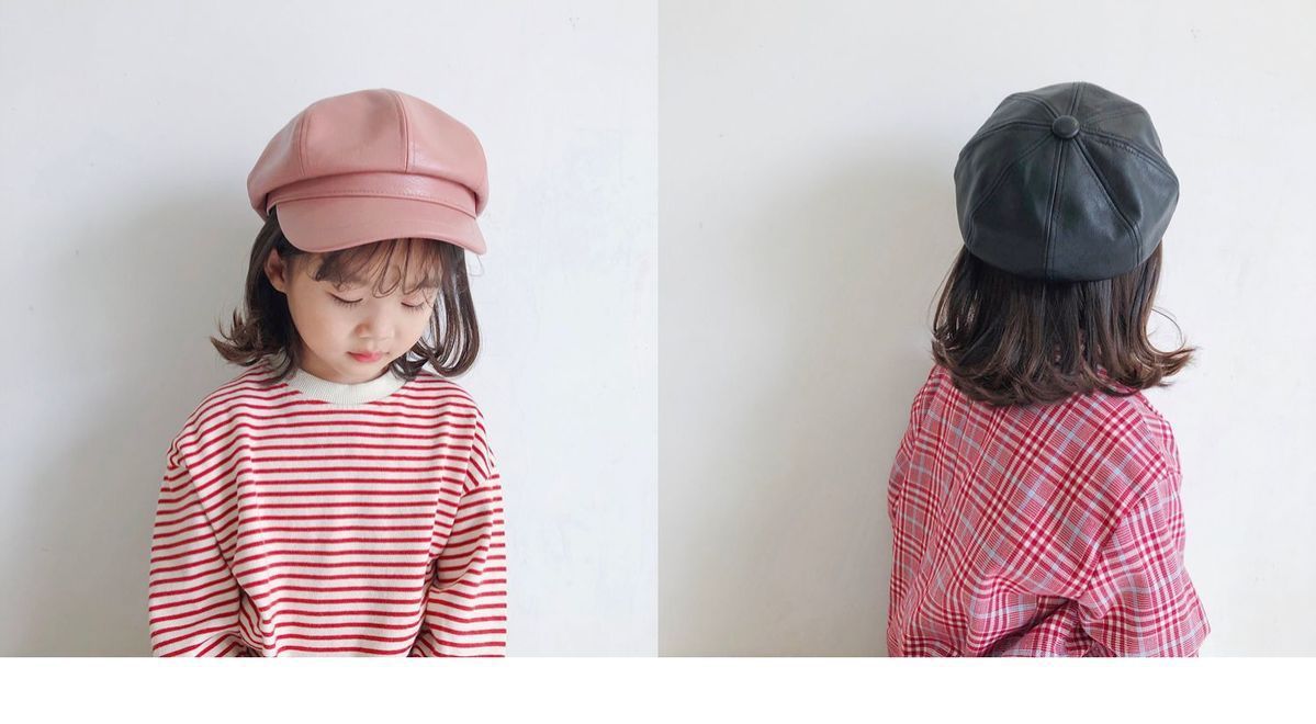 2-7 years old children's beret girls PU octagonal hat baby boy duck tongue parent-child painter newsboy hat autumn and winter