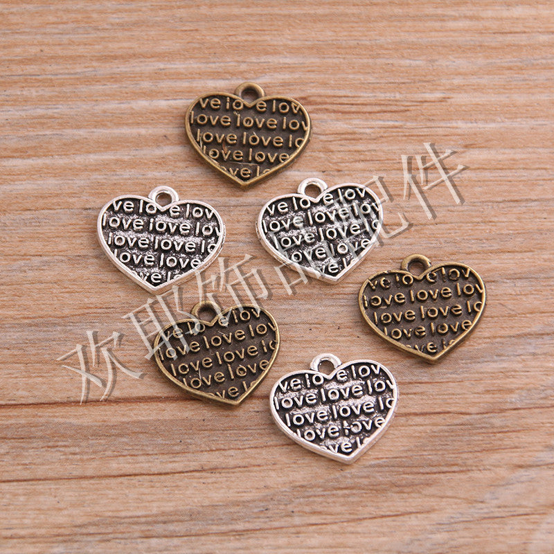 2-color new product DIY zinc alloy jewelry accessories LOVE heart pendant pendant 15*16mm 2C