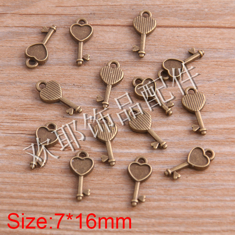 2-color new product mini key pendant pendant necklace bracelet accessories retro jewelry 7*16mm 15B