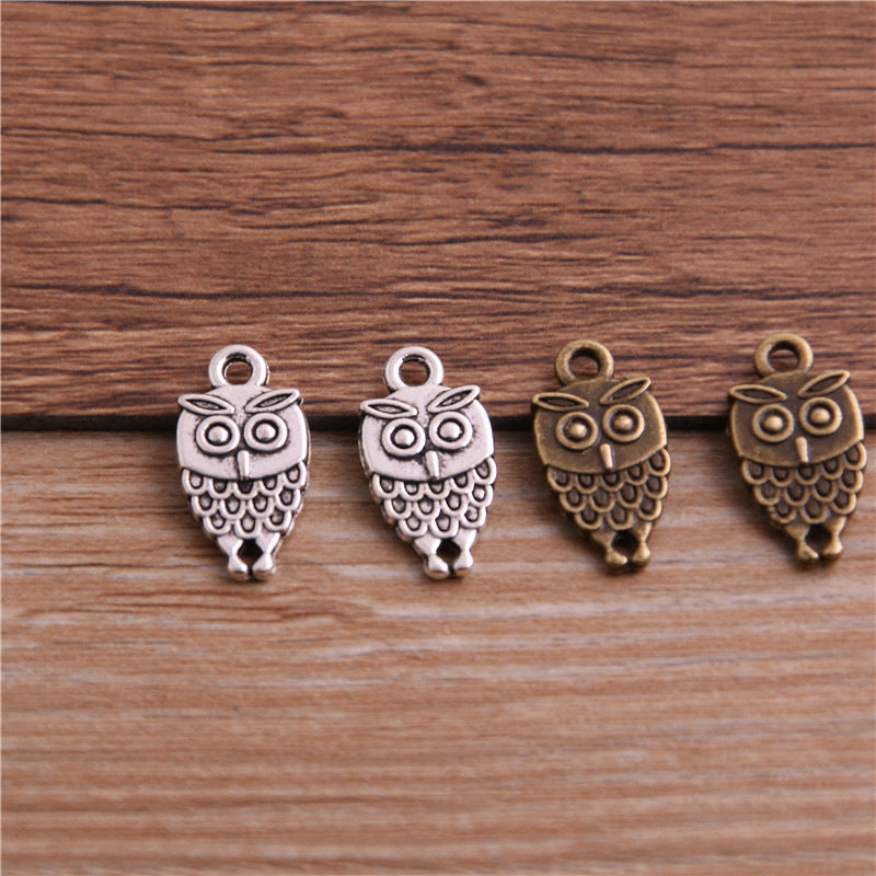 2-color retro owl pendant animal charm mobile phone pendant DIY jewelry accessories 18*10mm