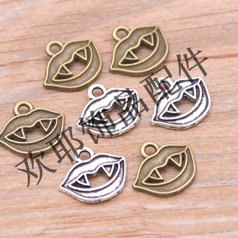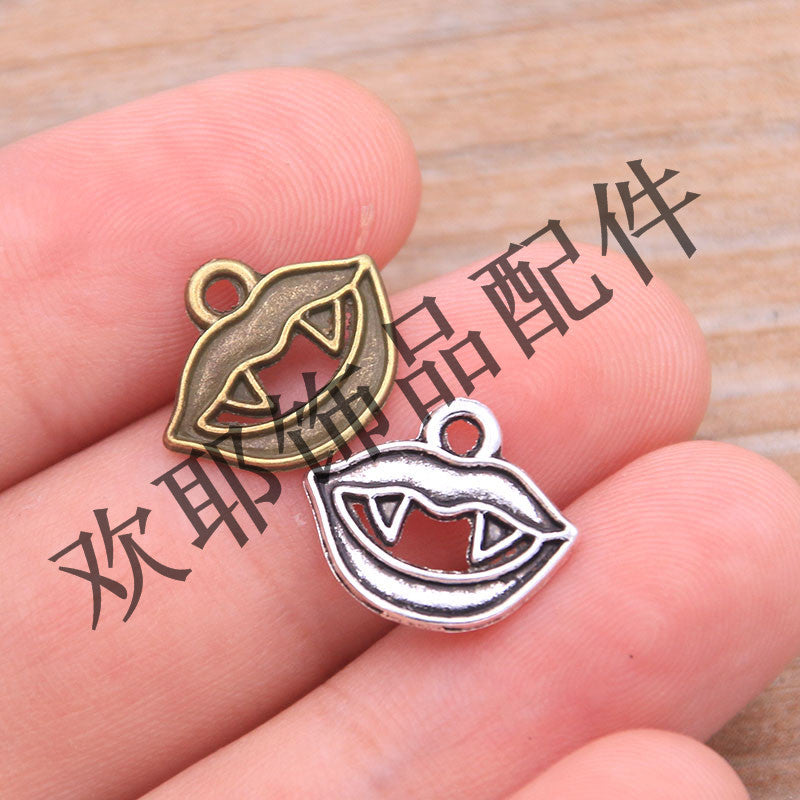 2 Colors 10*13mm DIY Zinc Alloy Jewelry Zombie Mouth Pendant Halloween Charm Jewelry Accessories