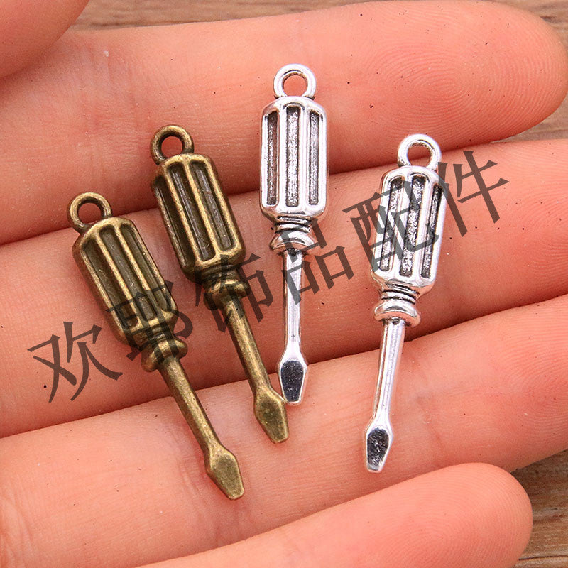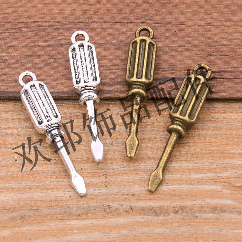 2 Colors 11*31mm DIY Alloy Jewelry Life Tools Charm Screwdriver Pendant Jewelry Luggage Accessories