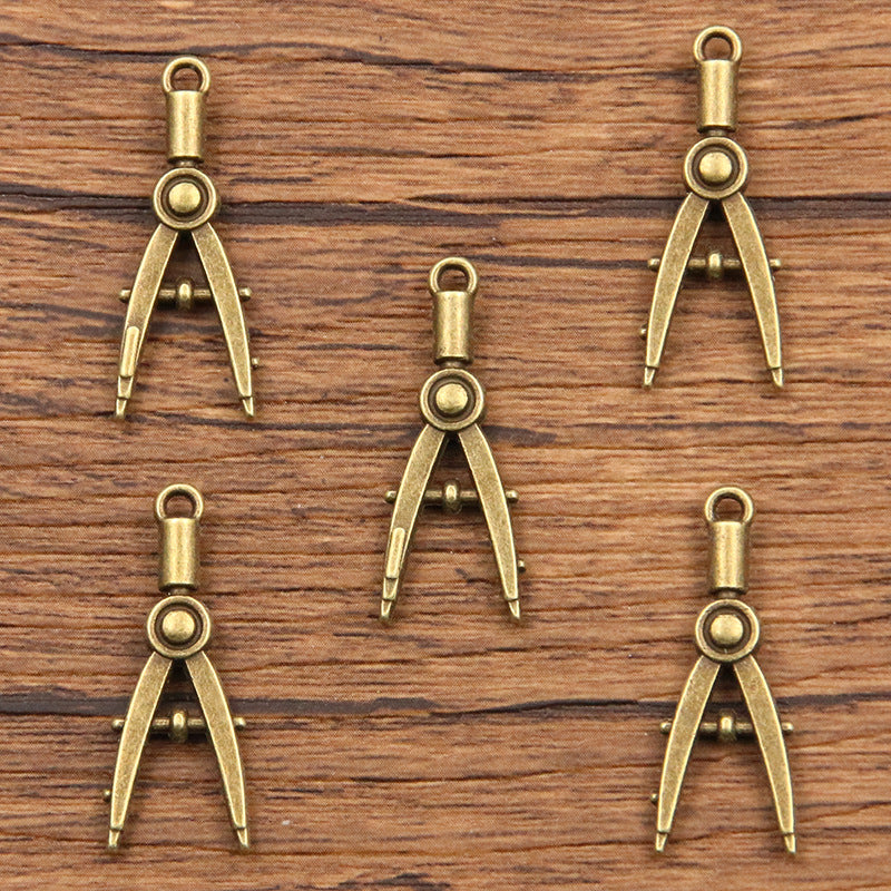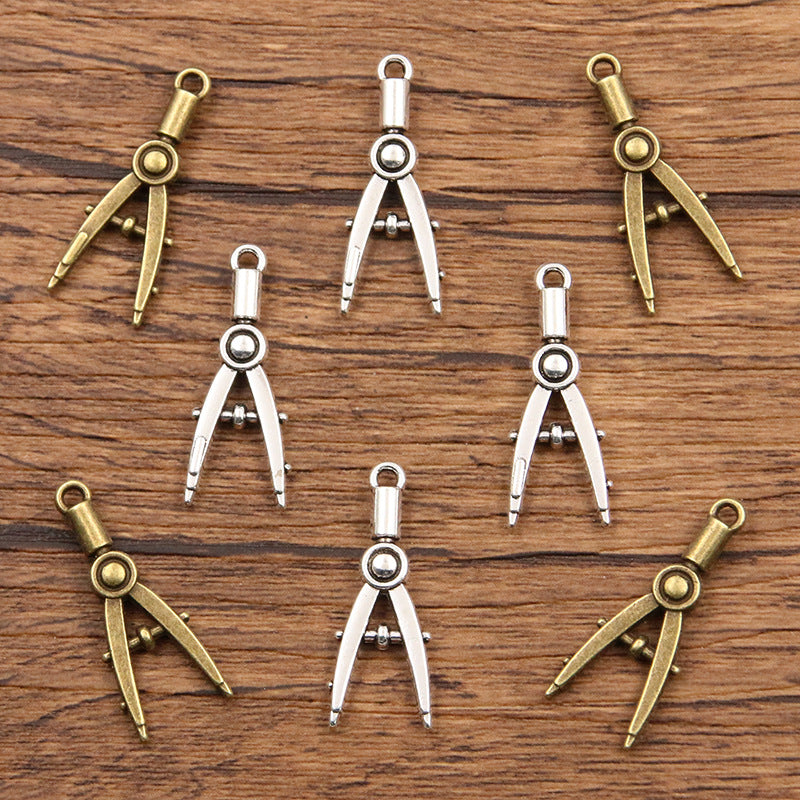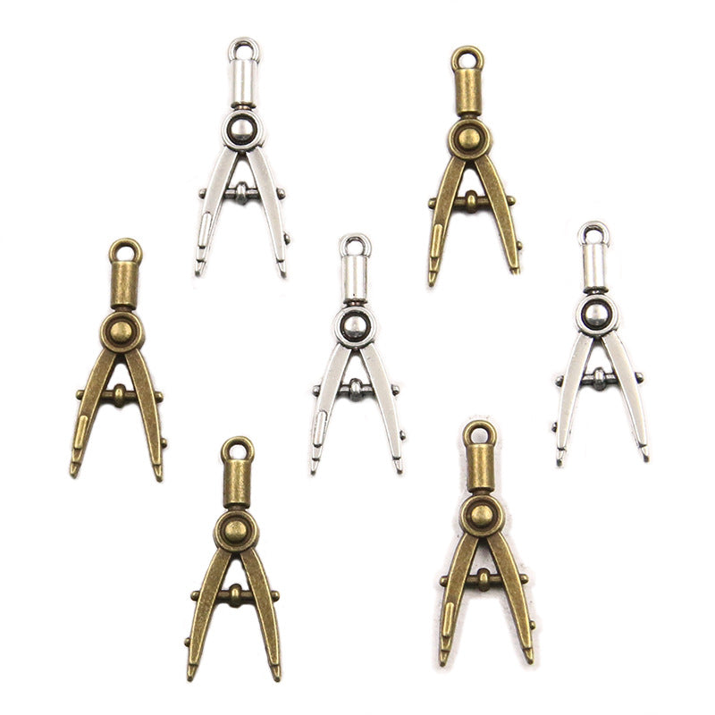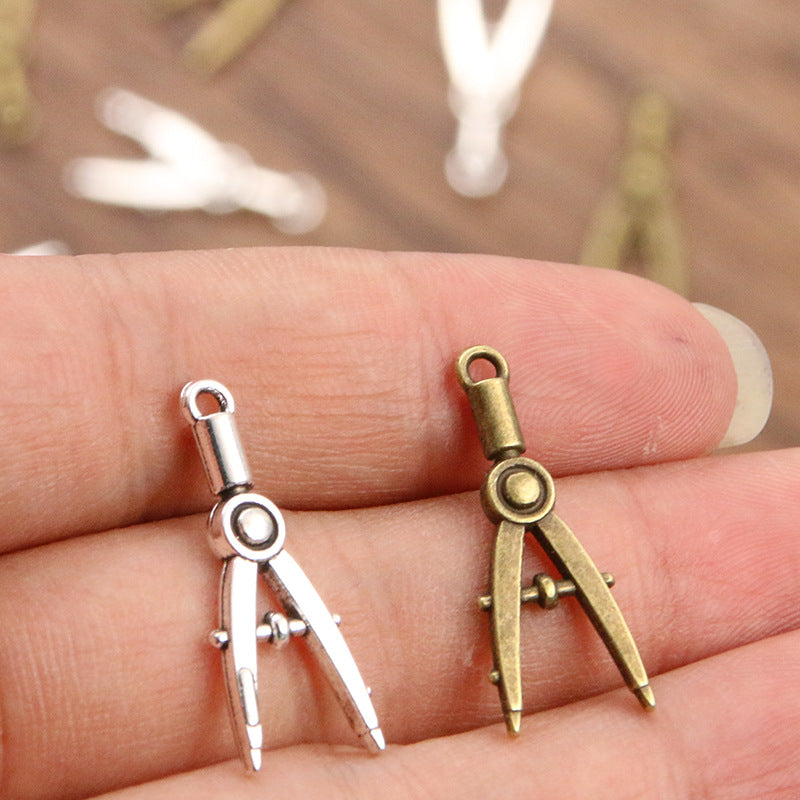 2 Colors 11X28mm Wholesale Student Learning Charm Compasses Pendant DIY Luggage Mobile Phone Jewelry Accessories
