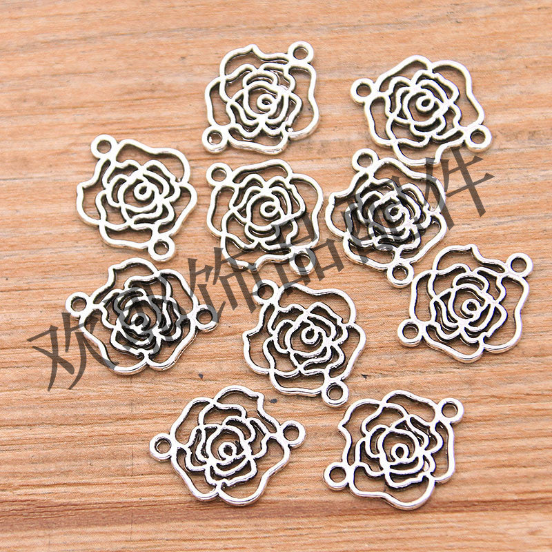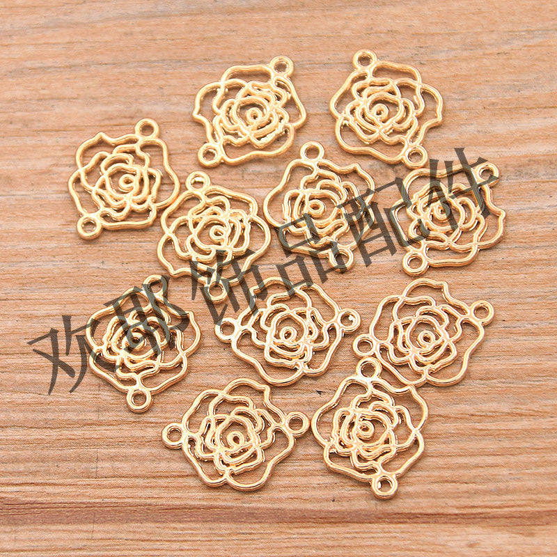 2 colors 13*16mm DIY alloy jewelry hollow rose linker plant pendant factory direct sale