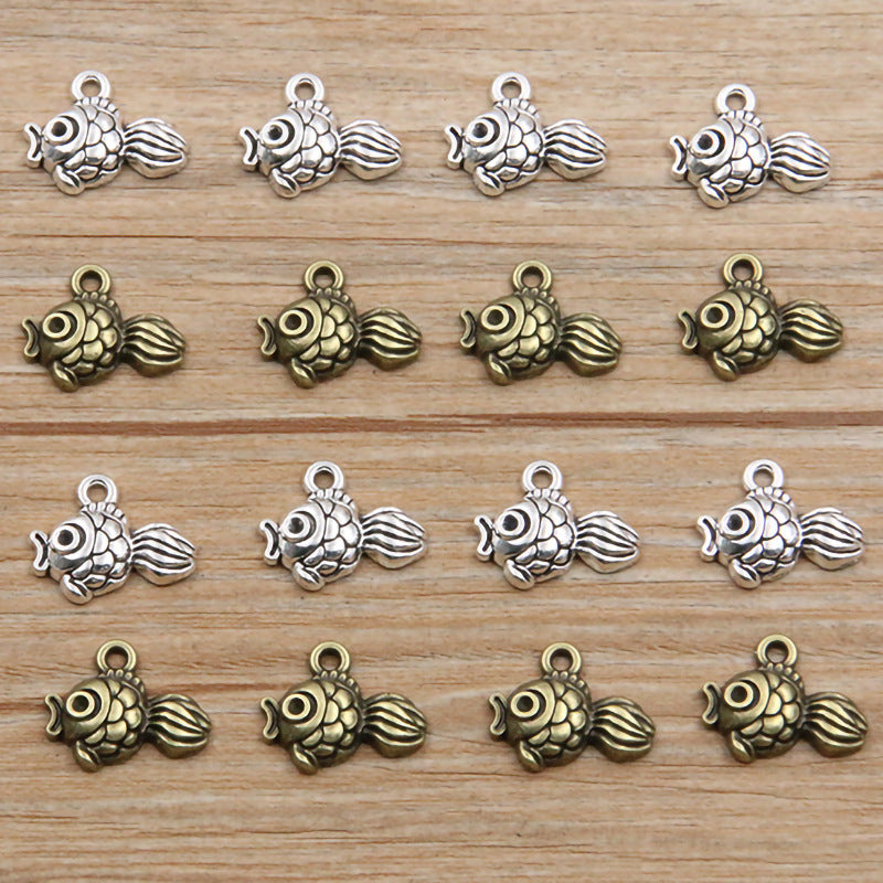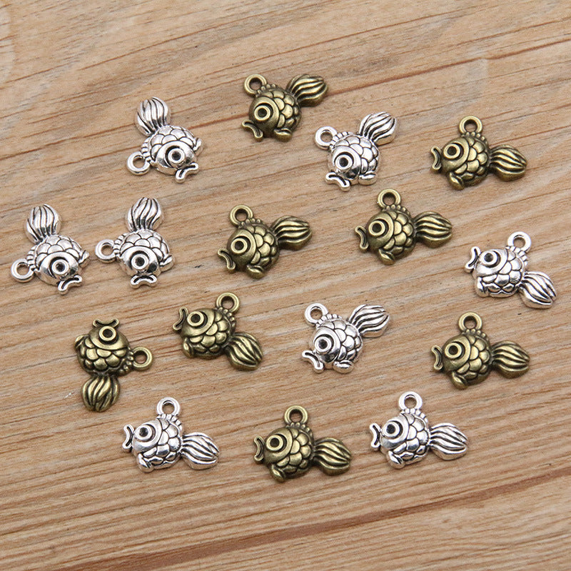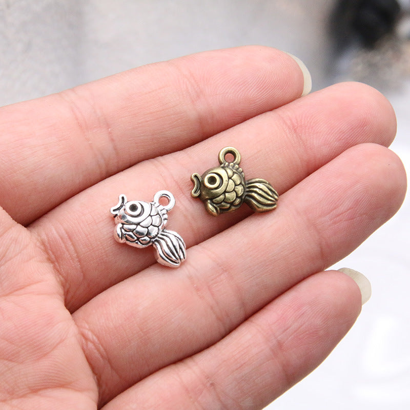 2 colors 14*17mm wholesale retro animal charm small fish pendant mobile phone pendant DIY jewelry accessories