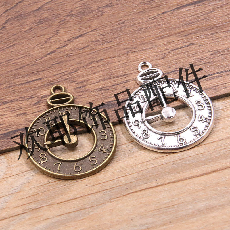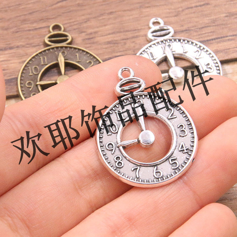 2 Colors 24*32mm Wholesale Hollow Steampunk Pendant Round Alarm Clock Pendant DIY Alloy Accessories