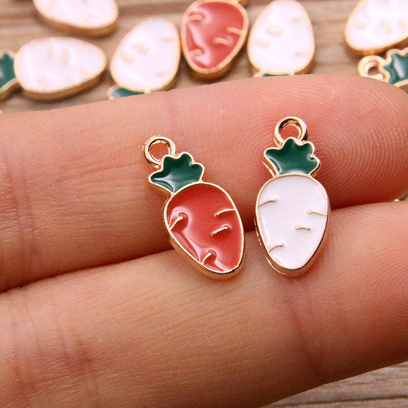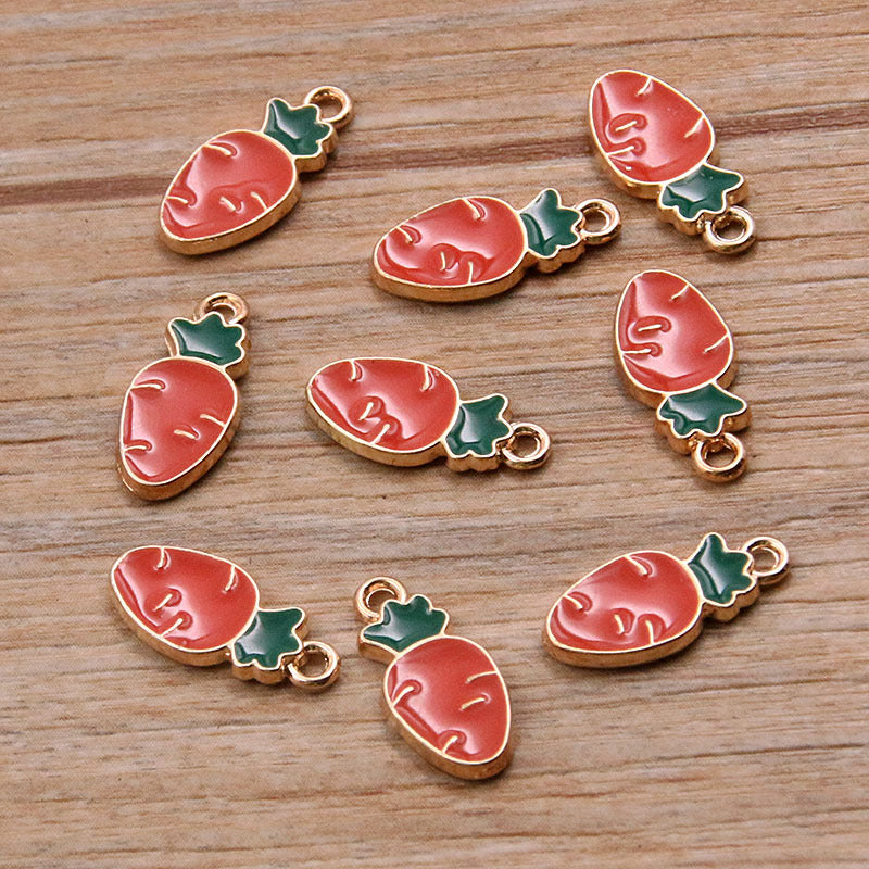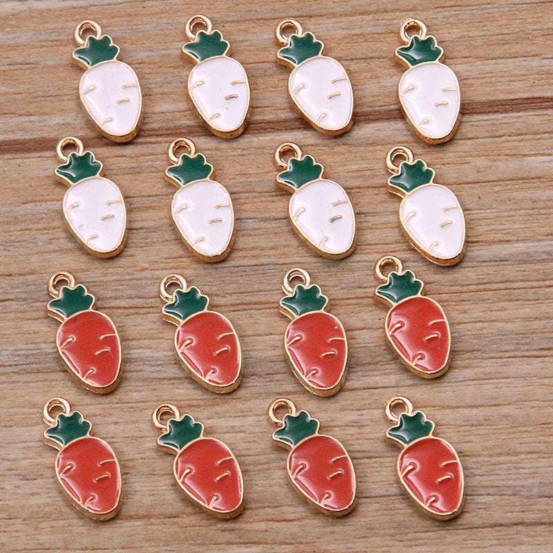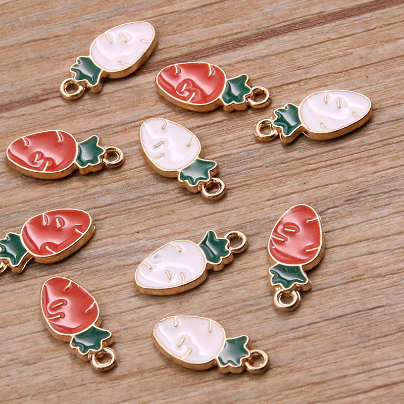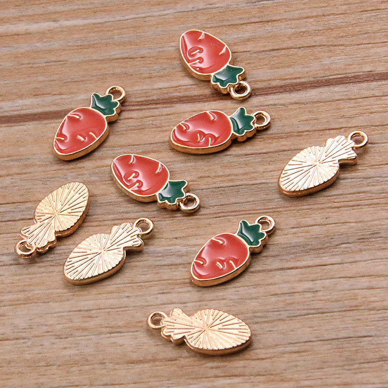2 Colors 7*15mm Alloy Jewelry Accessories KC Gold Drip Oil Charm MIN Carrot Pendant Vegetable Charm