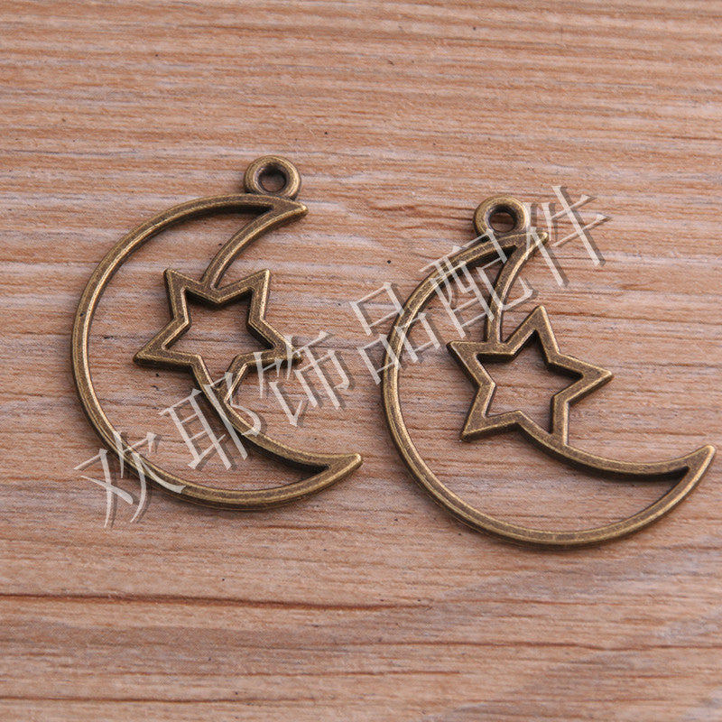 2 Colors Wholesale DIY Alloy Jewelry Accessories Natural Charm Hollow Moon Pendant 25*37mm 15B