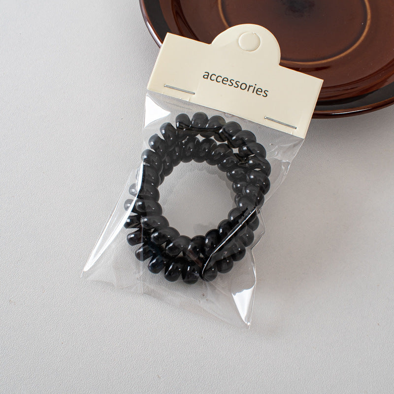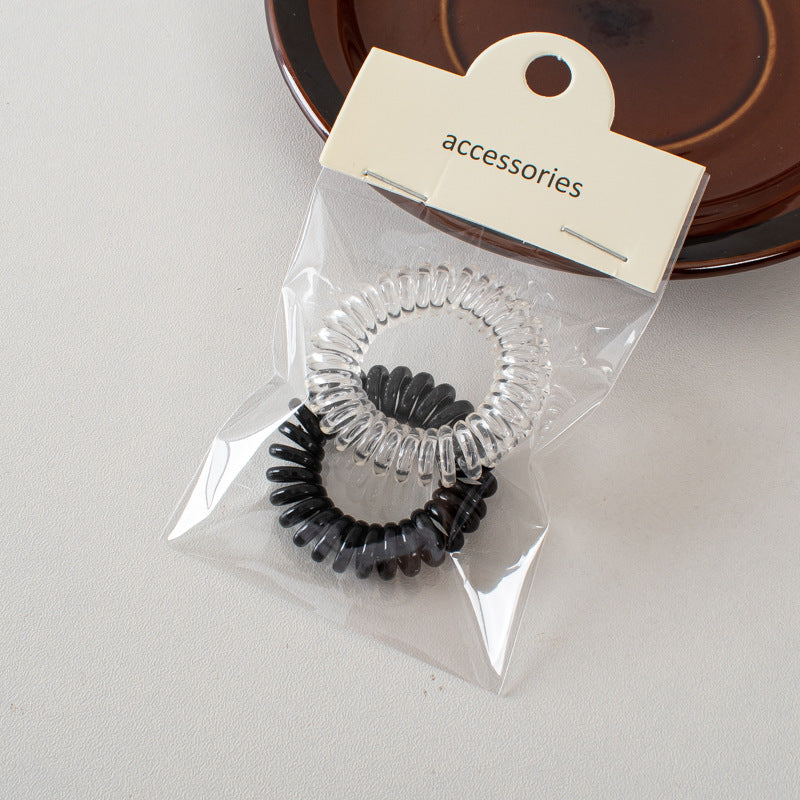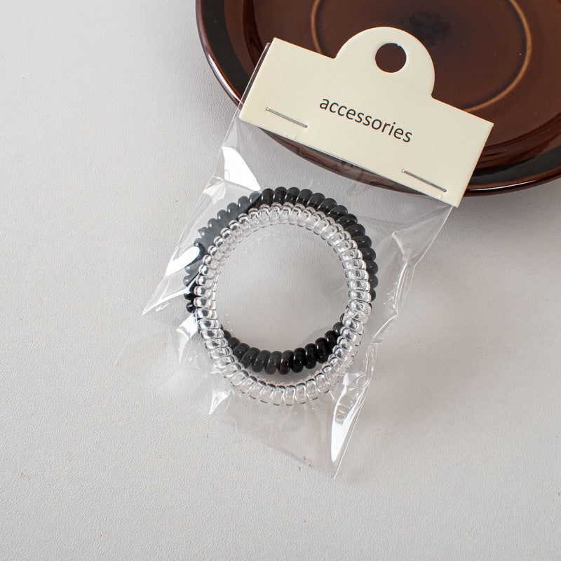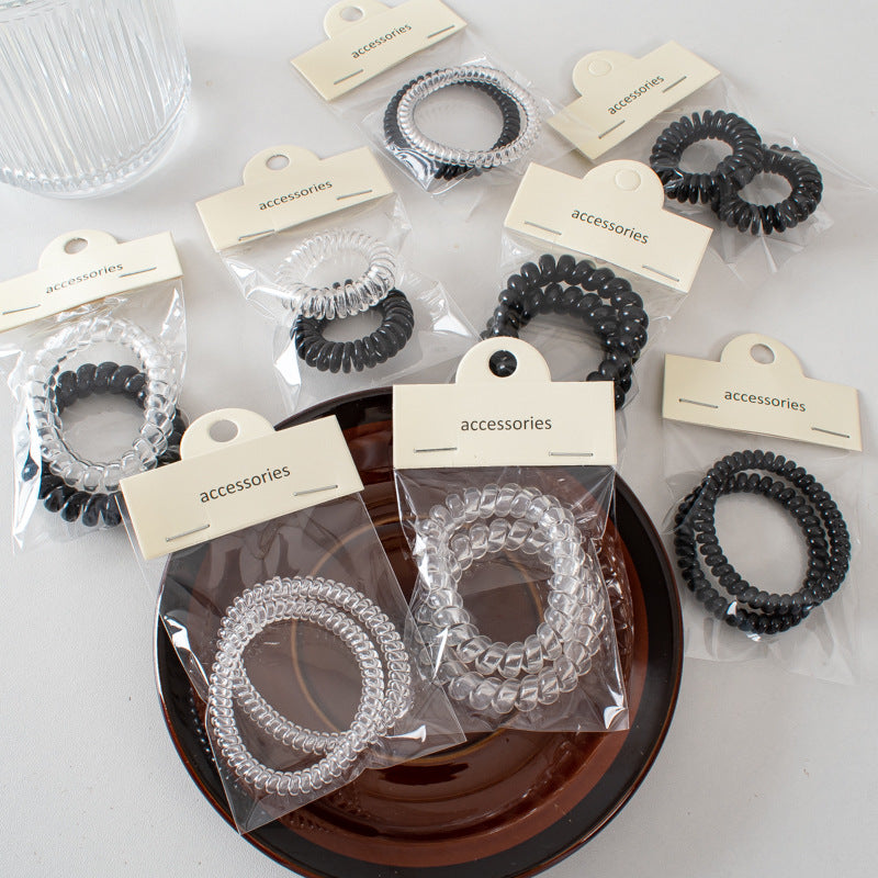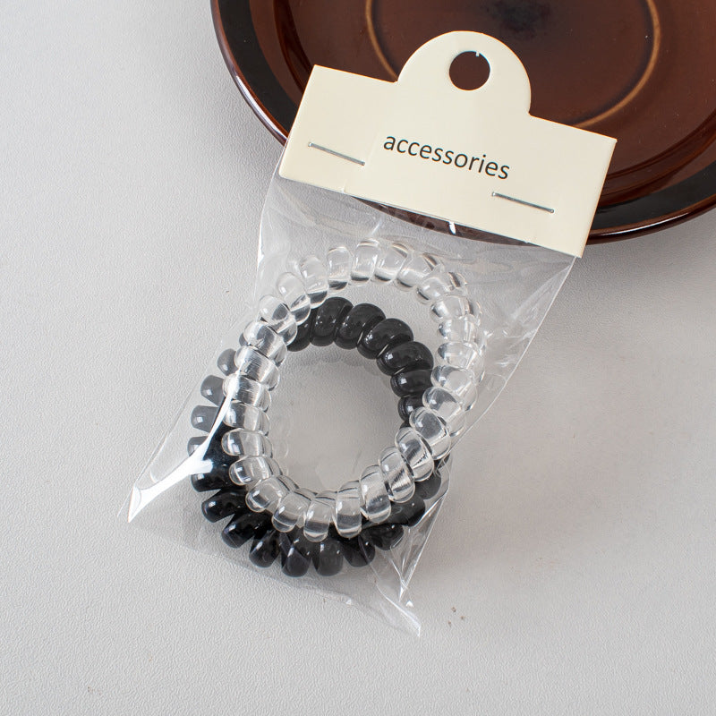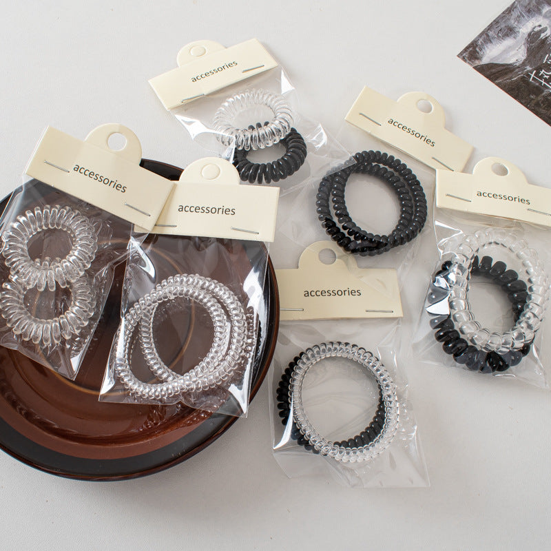 2 Pack Black Transparent Telephone Cord Hair Ring Simple Thin Section Korean Style Hair Rope Small Head Rope Hair Accessories Wholesale