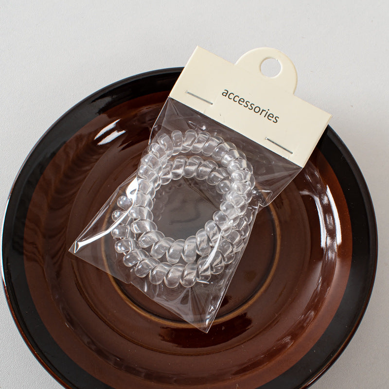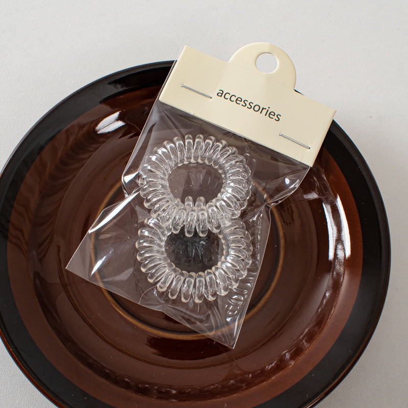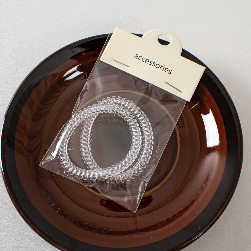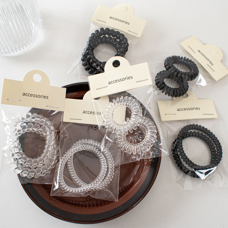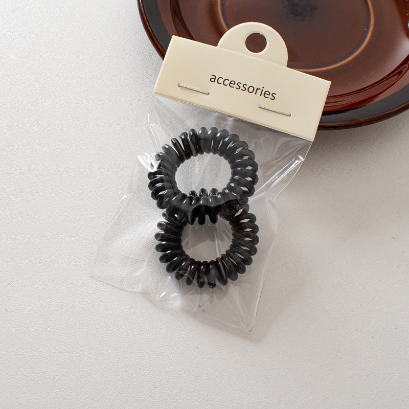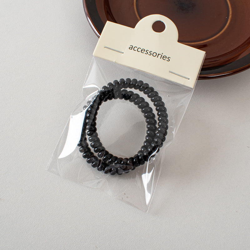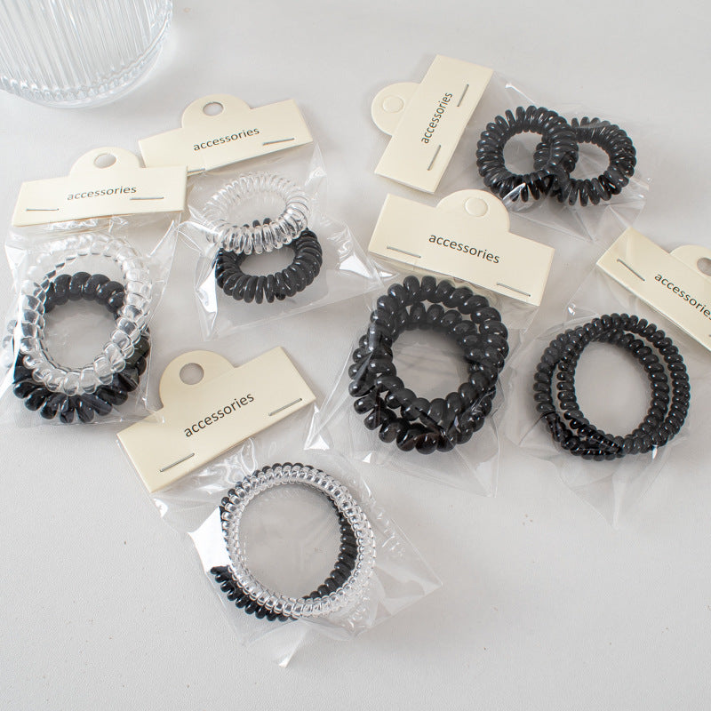 2 Pack Black Transparent Telephone Cord Hair Ring Simple Thin Section Korean Style Hair Rope Small Head Rope Hair Accessories Wholesale