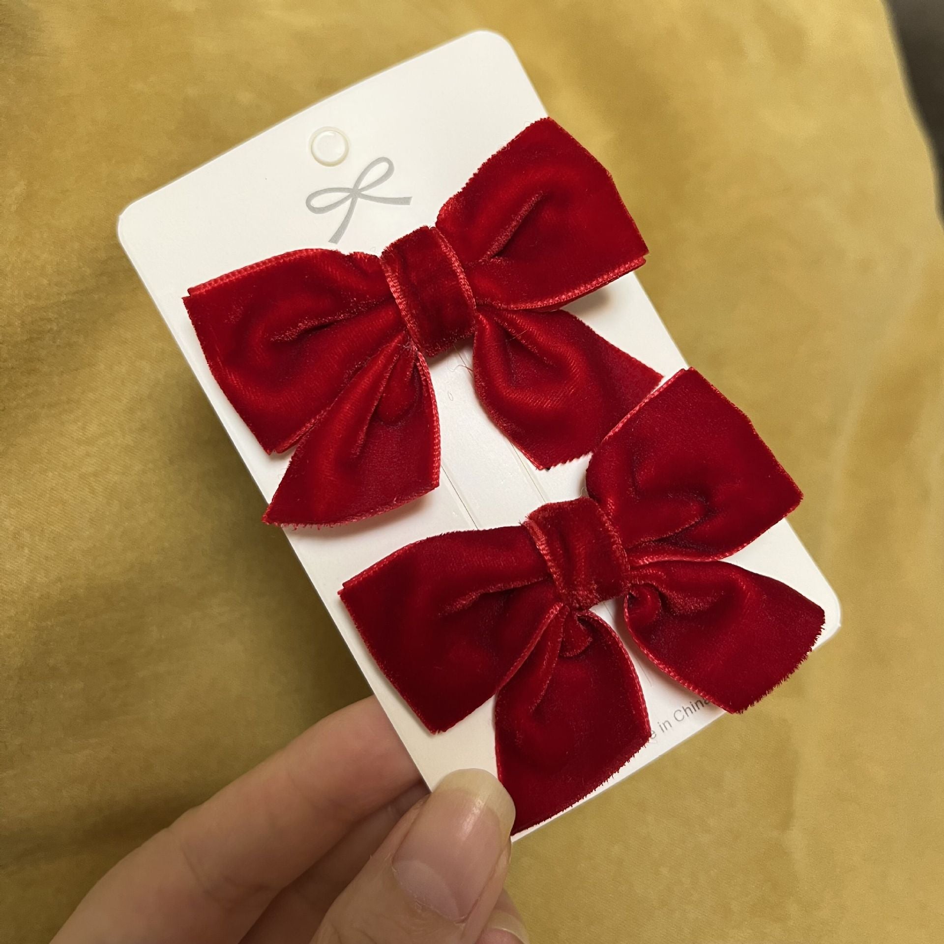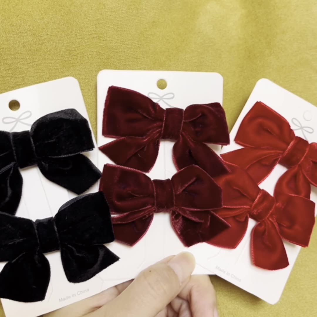 2 Packs~ Flocking Bowknot Hair Clip Autumn and Winter New Red Girl Sweet Hair Accessories Korean Princess Cute Hairpin