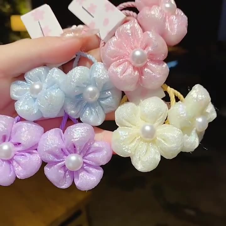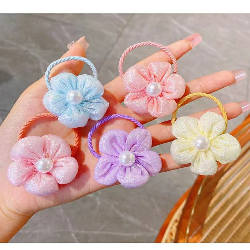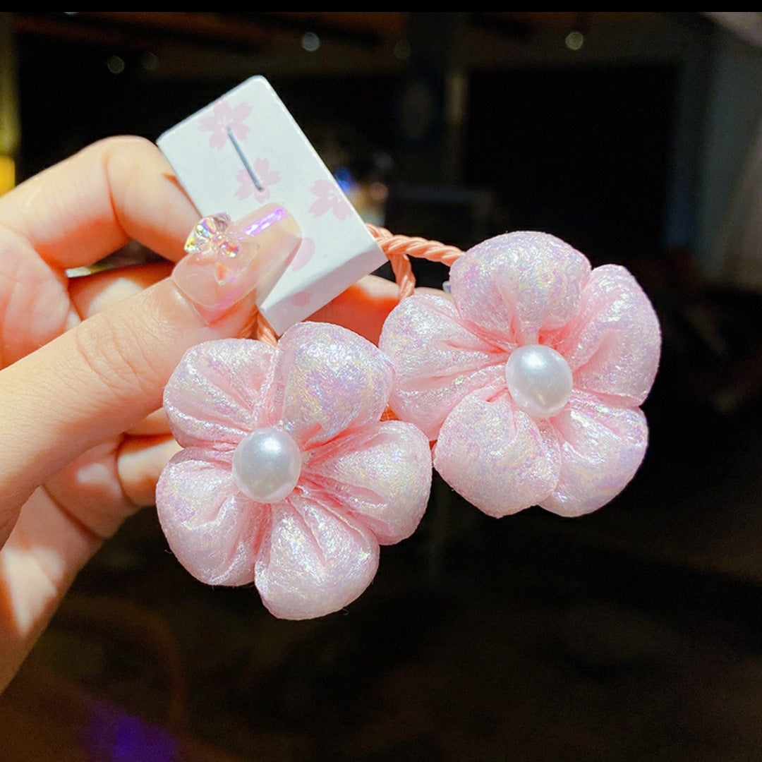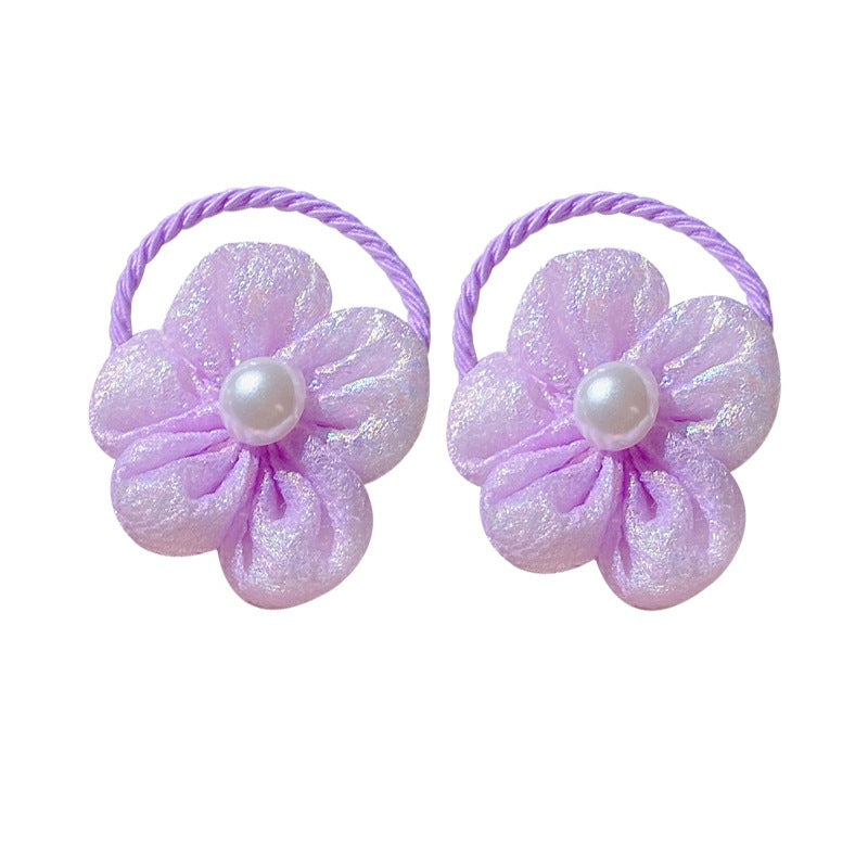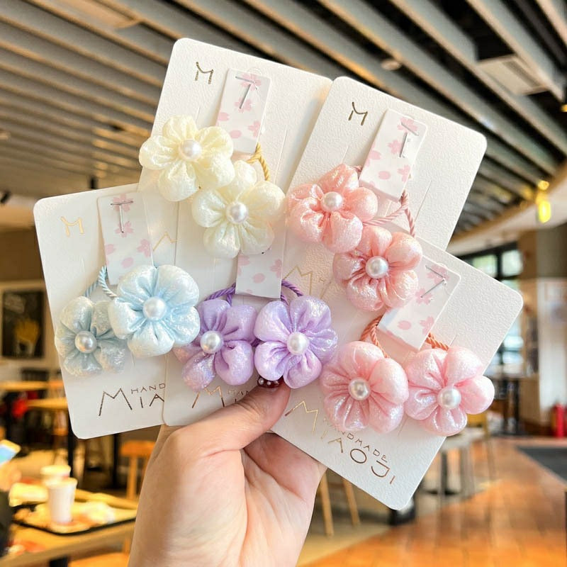 2 packs~Flower children's rubber band cute high elastic pink does not hurt hair small fresh hair accessories girls pearl hair ring