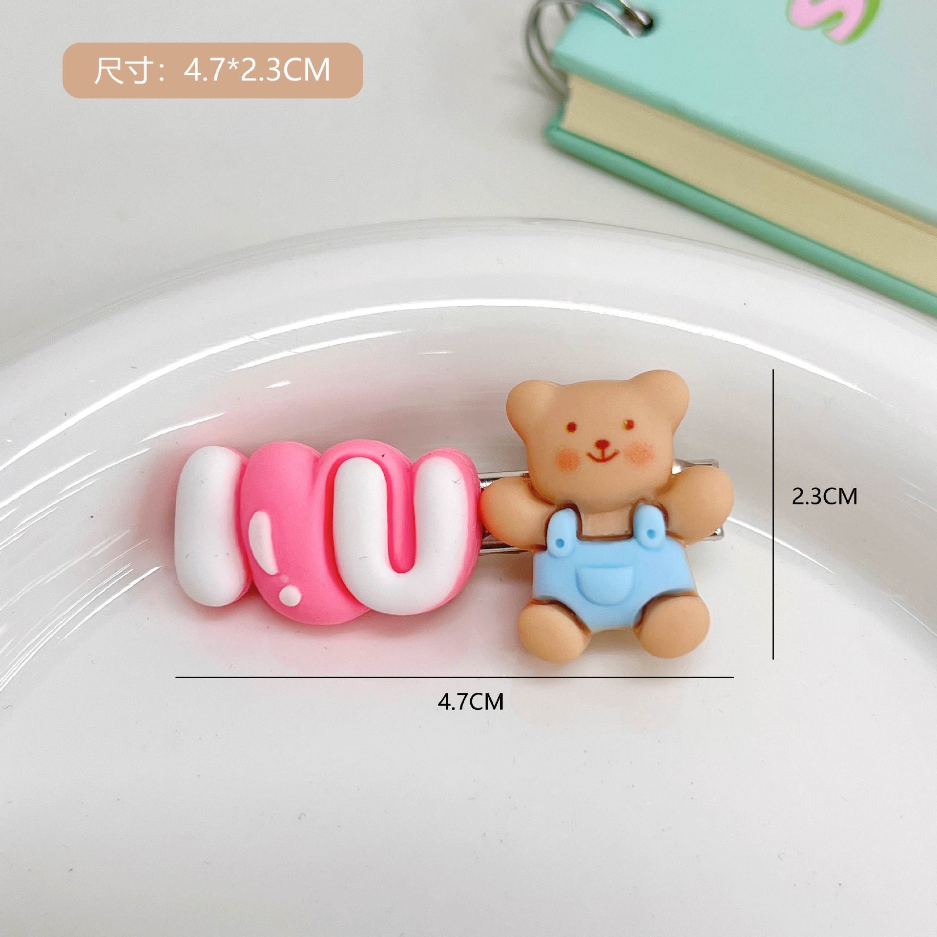 color : 1# mustard green (one pair), 2# cream yellow (one pair), 3# starry sky blue (one pair), 4# orange pink (one pair), 5# cherry red (one pair ), 1# white flower hairpin, 2# green flower hairpin, 3# pink flower hairpin, 4# purple flower hairpin, 5# orange flower hairpin, 6# blue flower hairpin, 7# yellow flower Hairpins, 1# Love Bunny, 2# Love Puppy, 3# Strawberry Bunny, 4# Pink Cat, 1# Milky Puppy, 2# Milky Kitten, 3# Milky Bear, 3# Rabbit Hair Clip, 4# bear hairpin