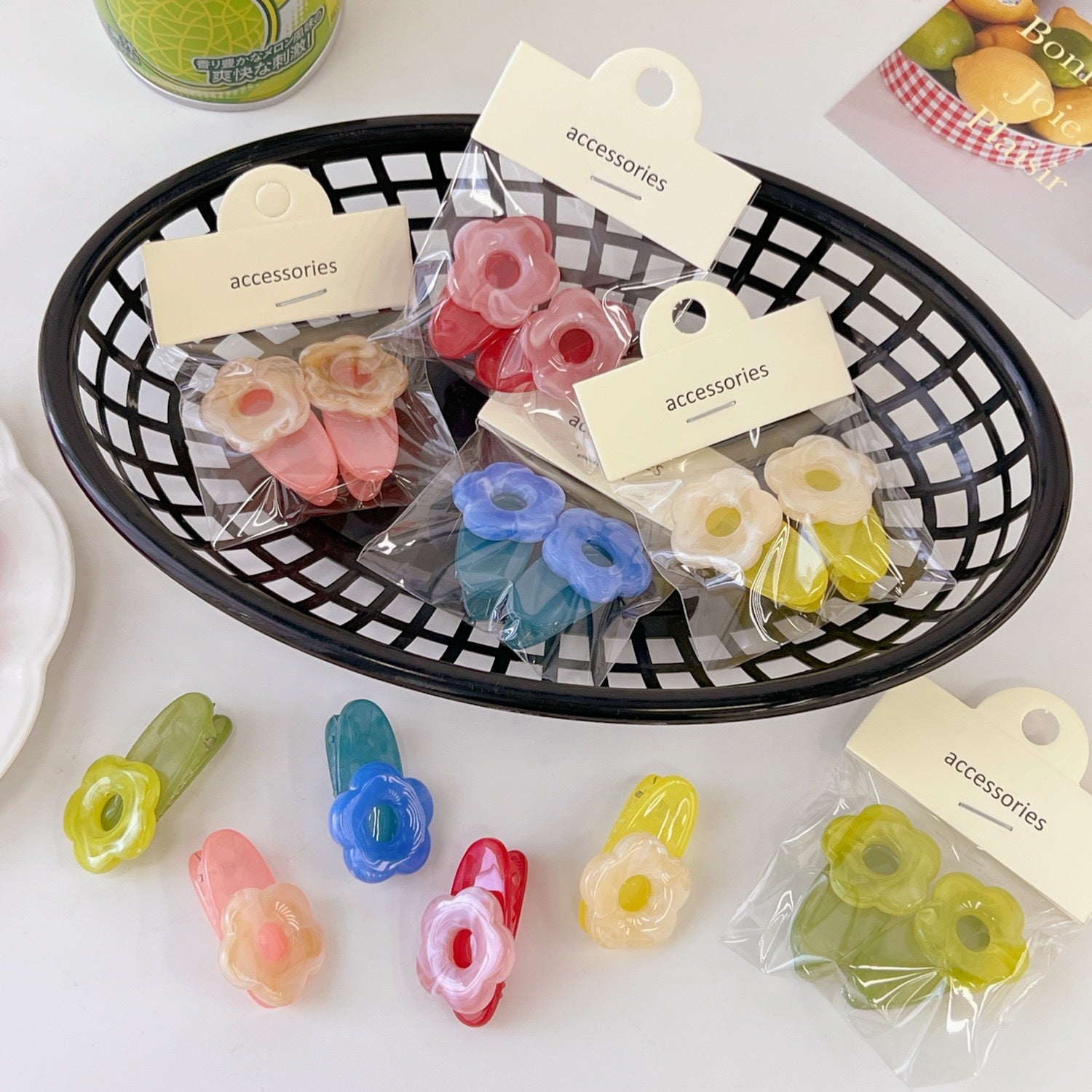 2 packs of ins wind candy color hairpin sweet flower hairpin acrylic side clip bangs clip headdress hair accessories