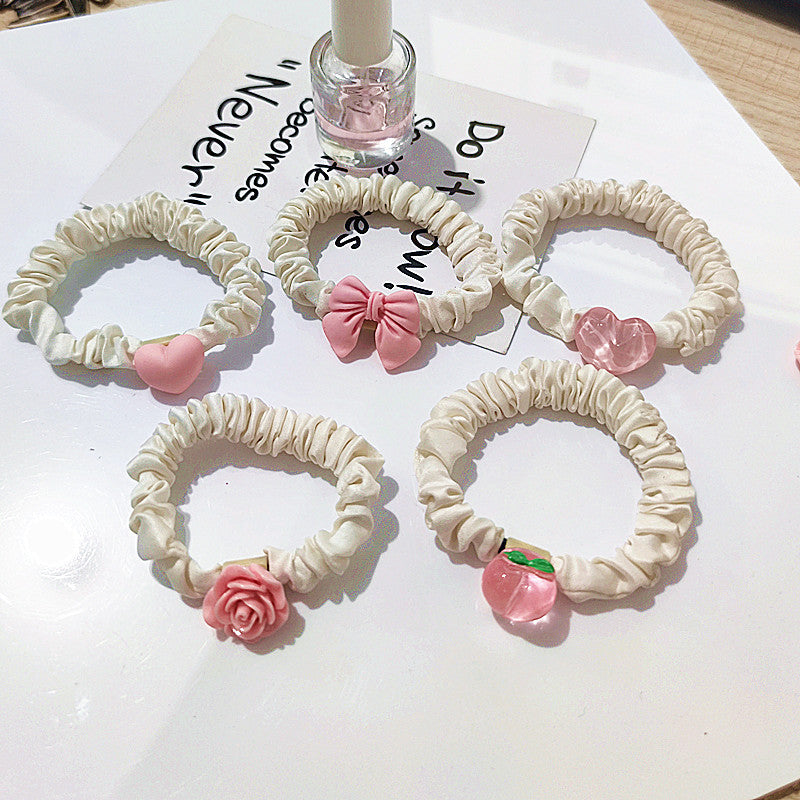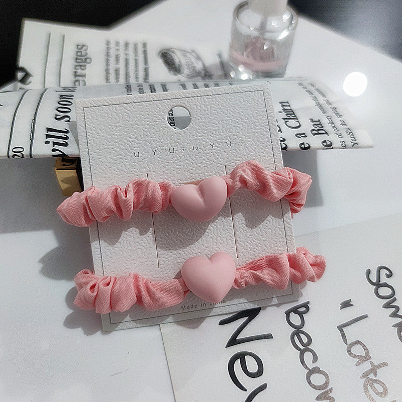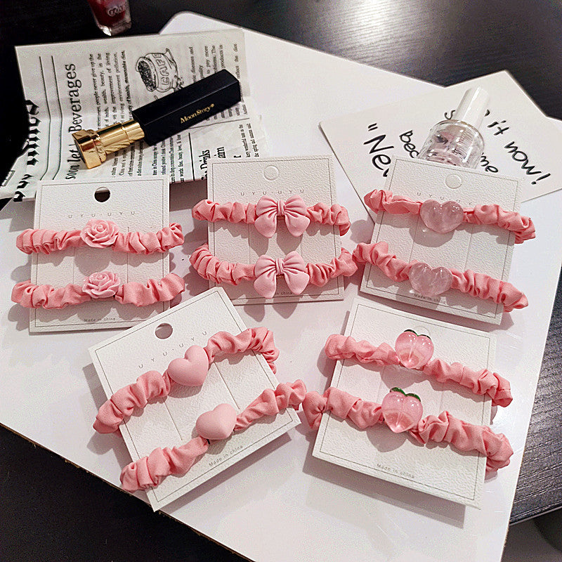 2 packs ~ pink and tender sausage circle, peach heart, high elasticity, new sweet headdress, Korean version of bowknot female hair circle