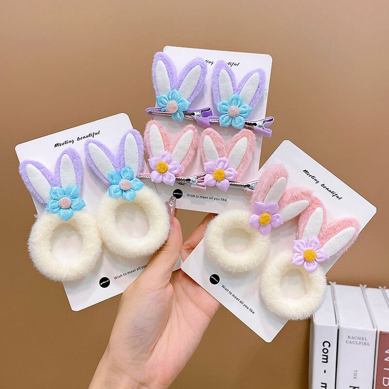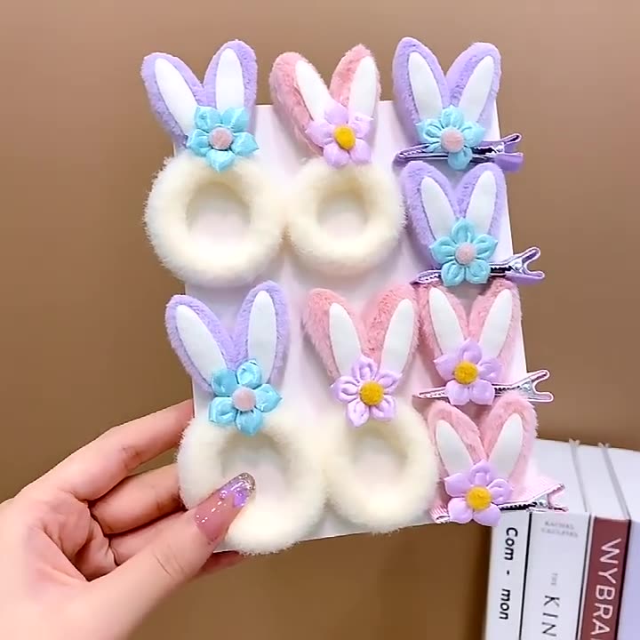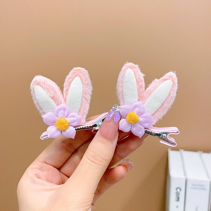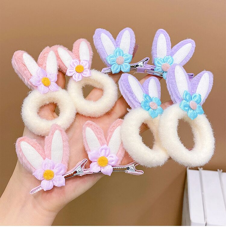color: 1# Plush Rabbit Ear Flower Hairband - Purple 2pcs, 2# Plush Rabbit Ear Flower Hairband - Pink 2pcs, 3# Plush Rabbit Ear Flower Hairpin - Purple 2pcs, 4# Plush Rabbit Ear Flower Hairpin - Pink 2pcs