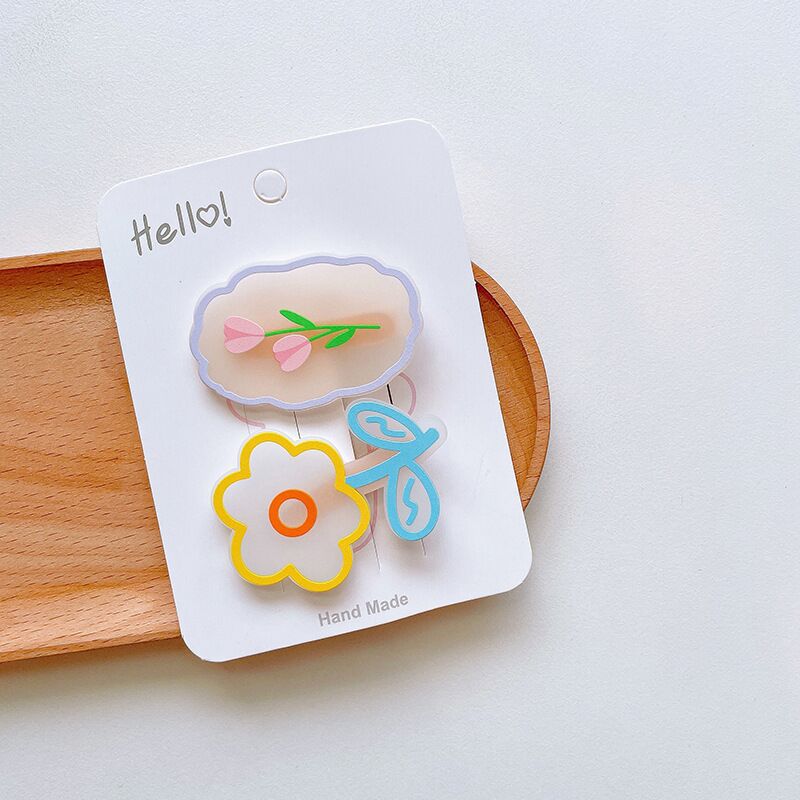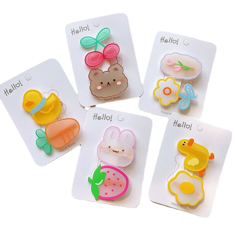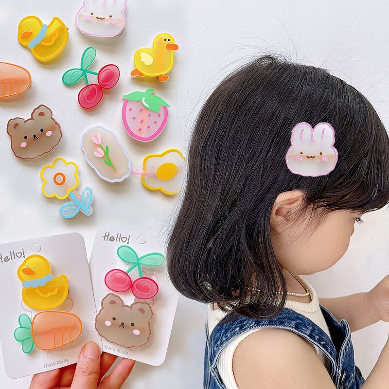 2-piece set~cute hairpin children's acetate plate cartoon rabbit bear sweet flower new girl broken hairpin