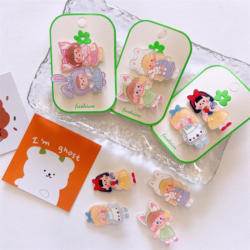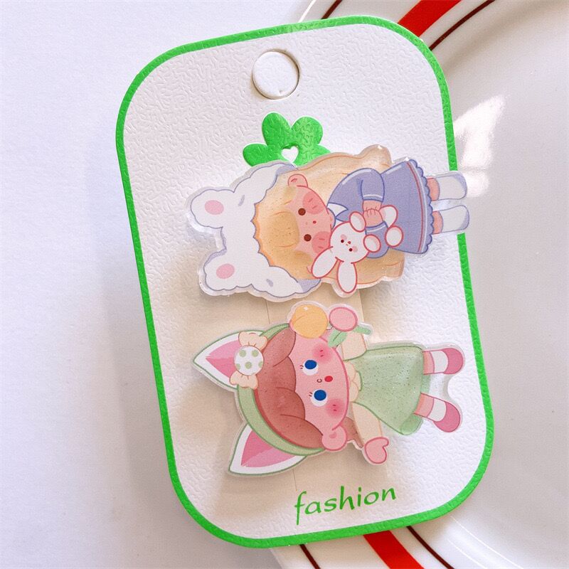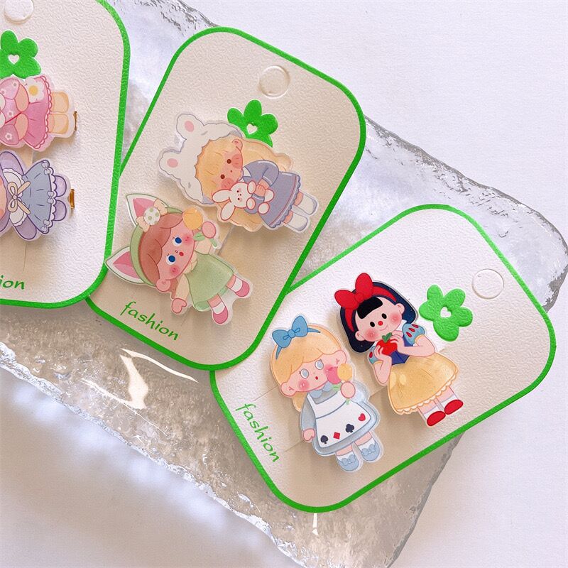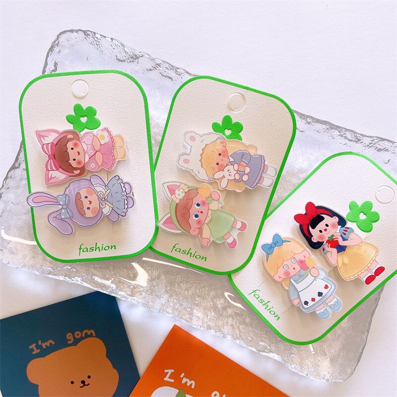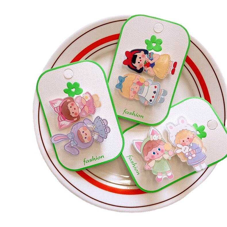 2-piece set~New little girl hair clip cute cartoon girl heart suit duckbill clip Korean version all-match hairpin
