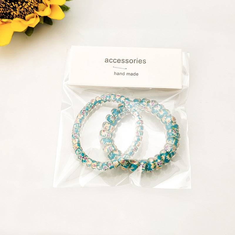 2 pieces of explosive style broken flower combination phone cord hair ring seamless hair accessories net red cute high elastic phone ring head rope