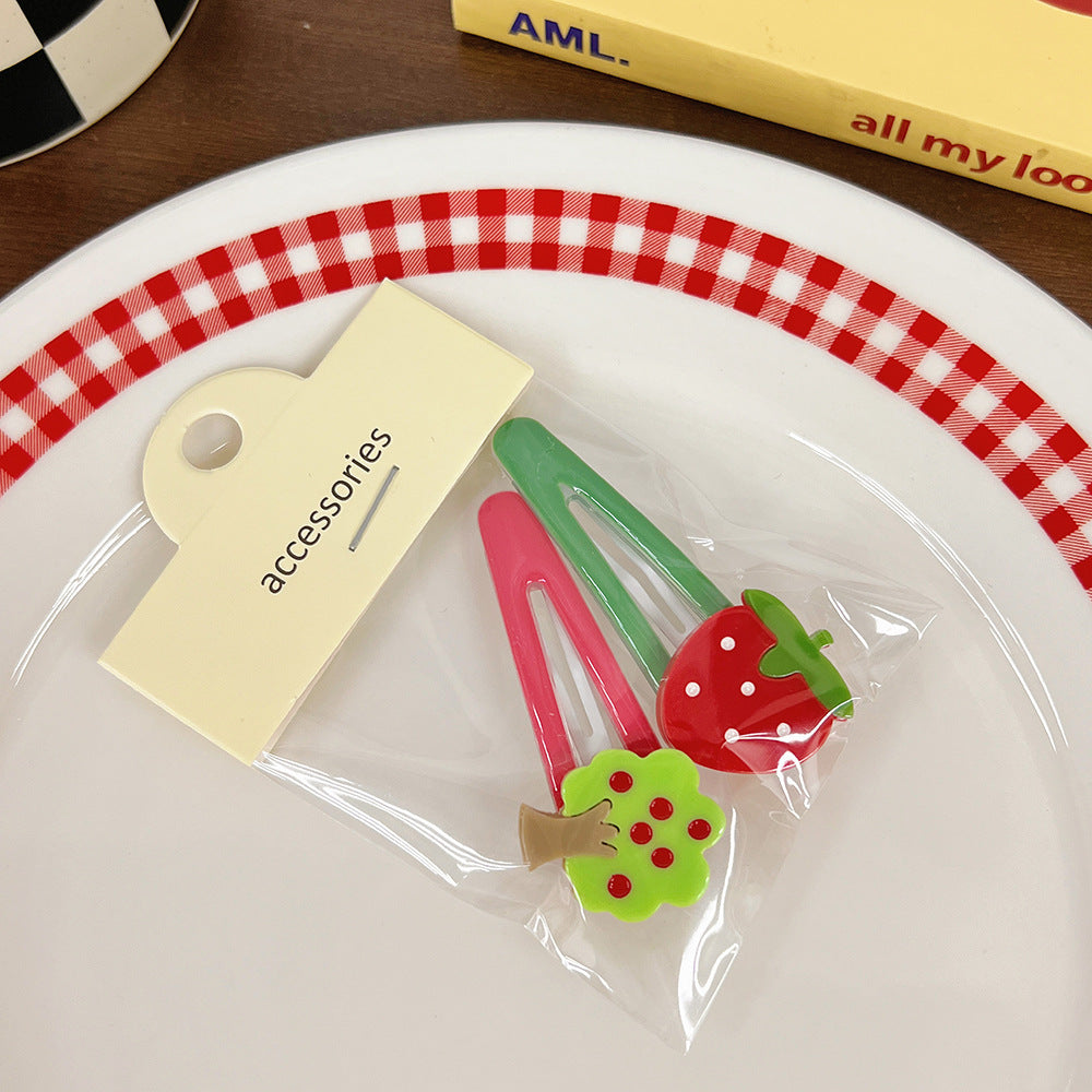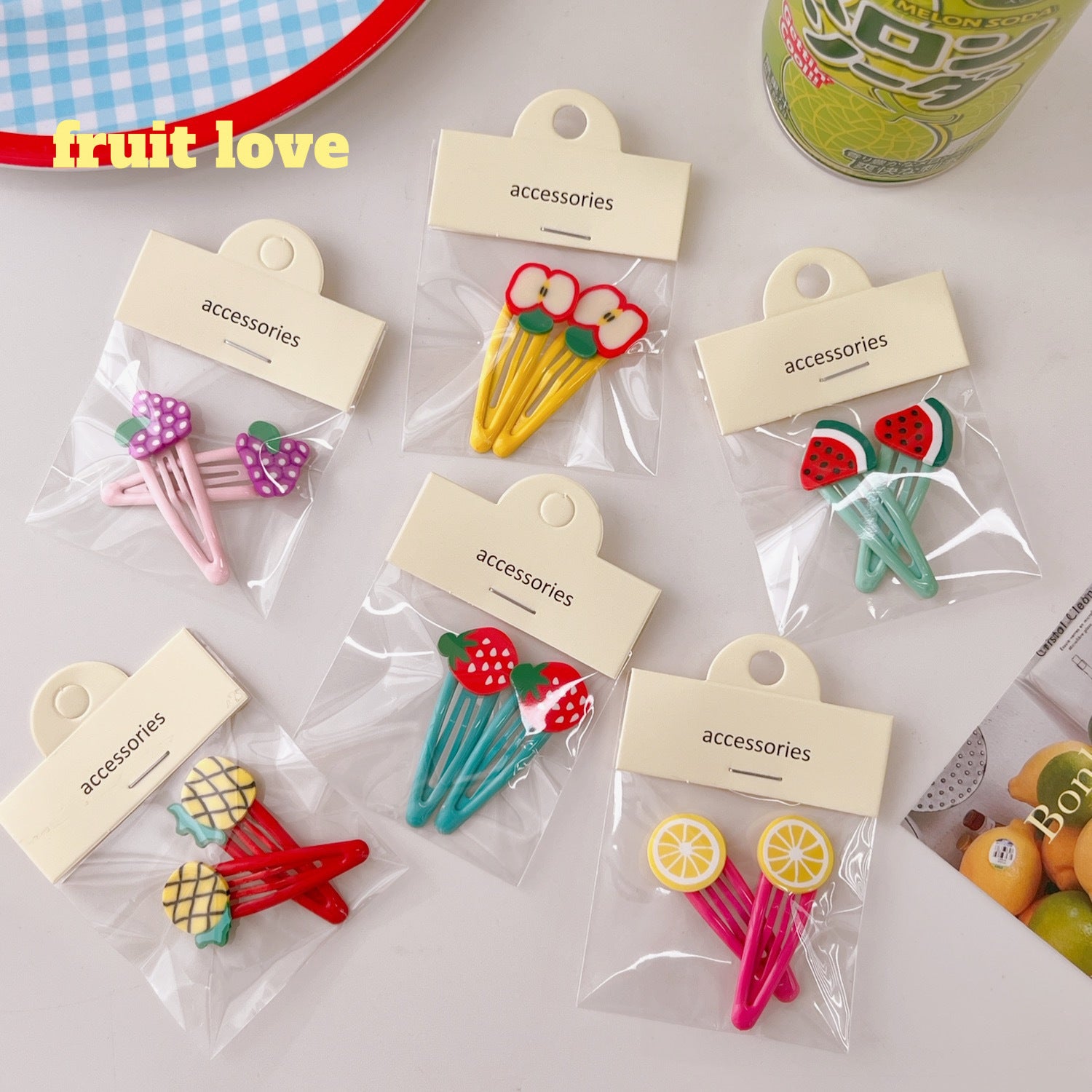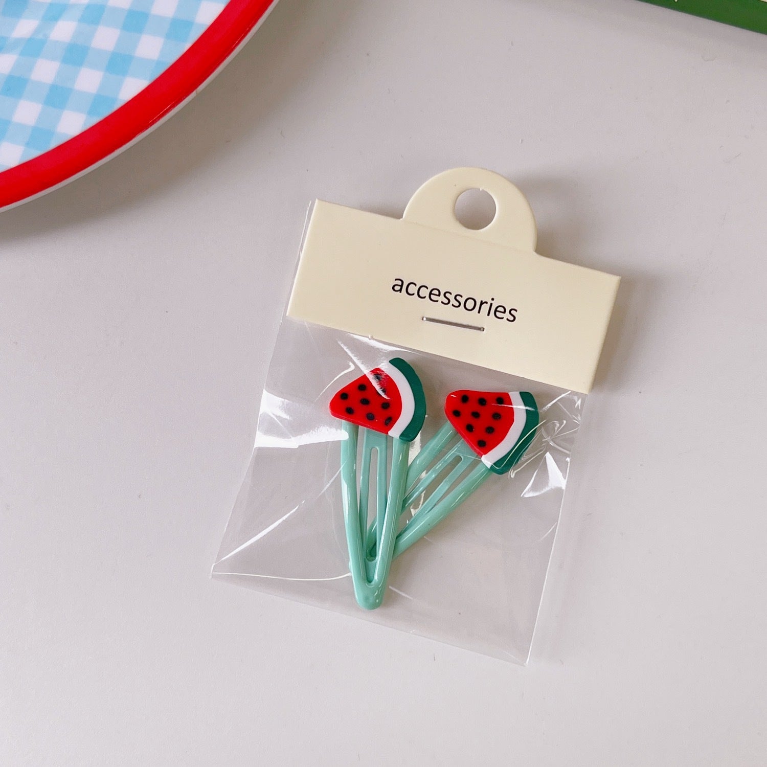 2 pieces of fruit hair clip BB clip cute girl heart bangs clip apple watermelon forehead broken hair clip children's hair accessories
