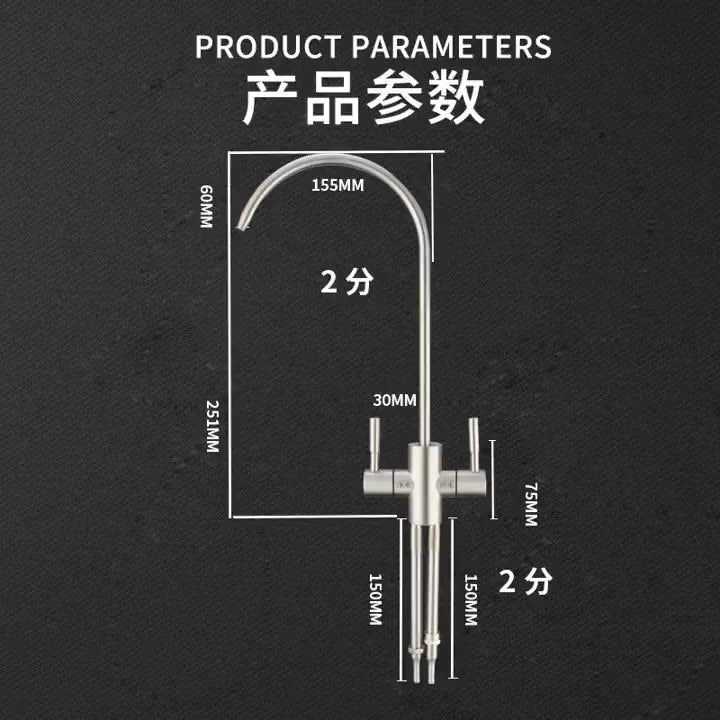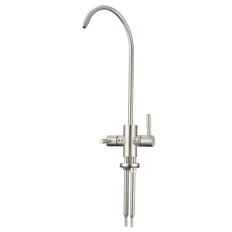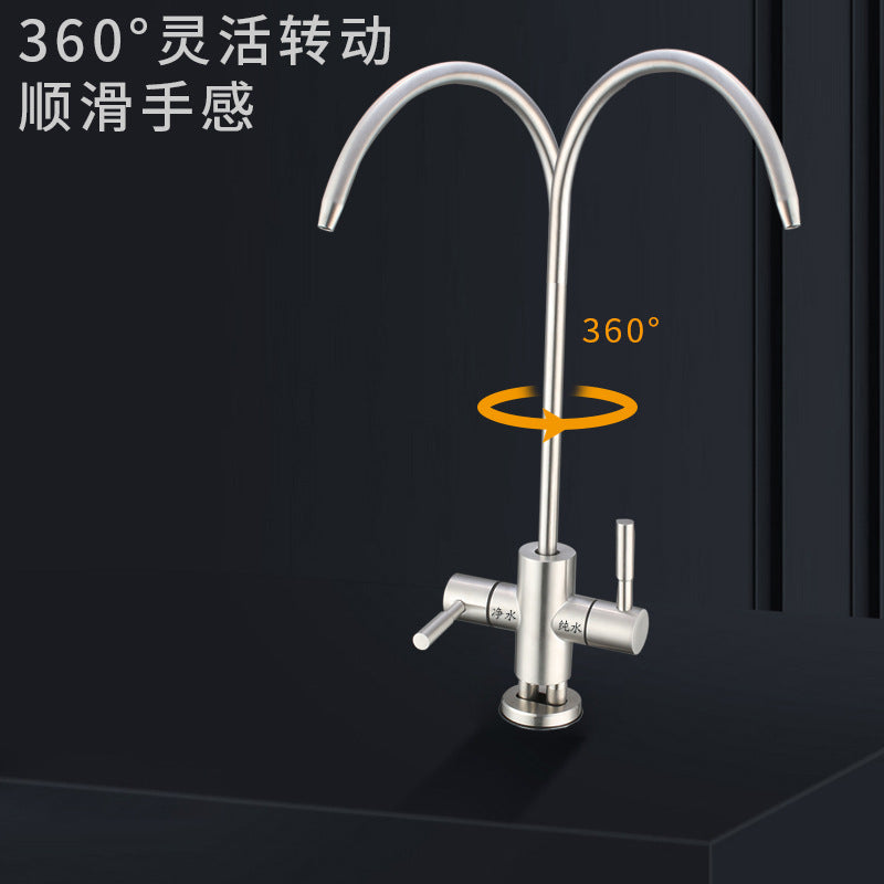2-point double-open long-legged large-bend stainless steel water purifier faucet kitchen rotatable double-open water purifier faucet