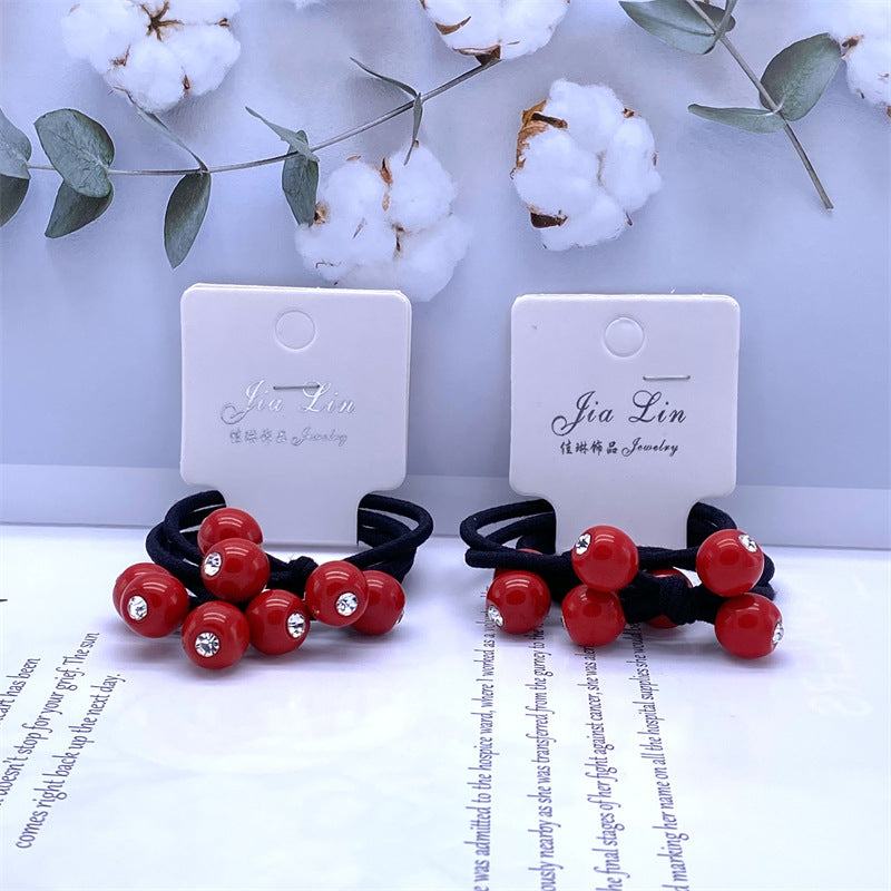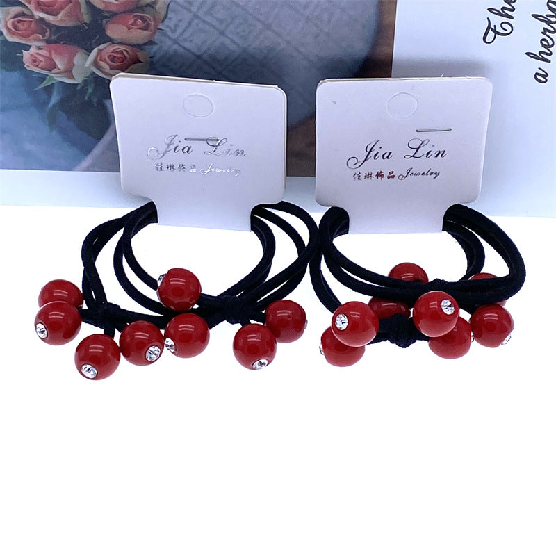 2 sets of order cards, big red beads, middle drill, women's hair tie, hair rope, hair ring, rubber band, entity two yuan store hair accessories and head accessories